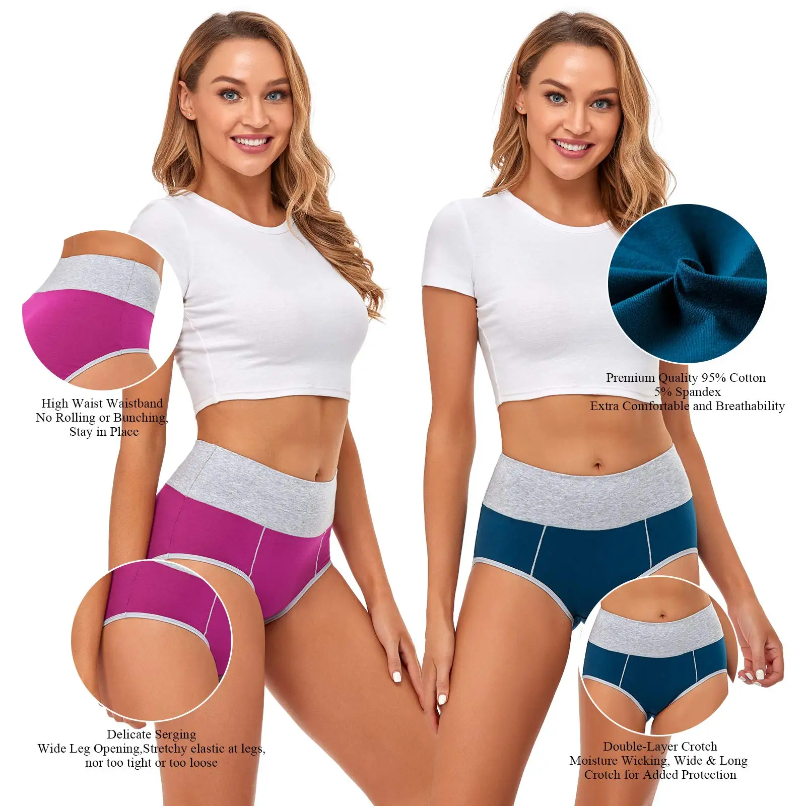 Cotton Breathable Elastic Hid-Waist Women Cotton Panties Wholesale Everyday Panties Briefs for Women
