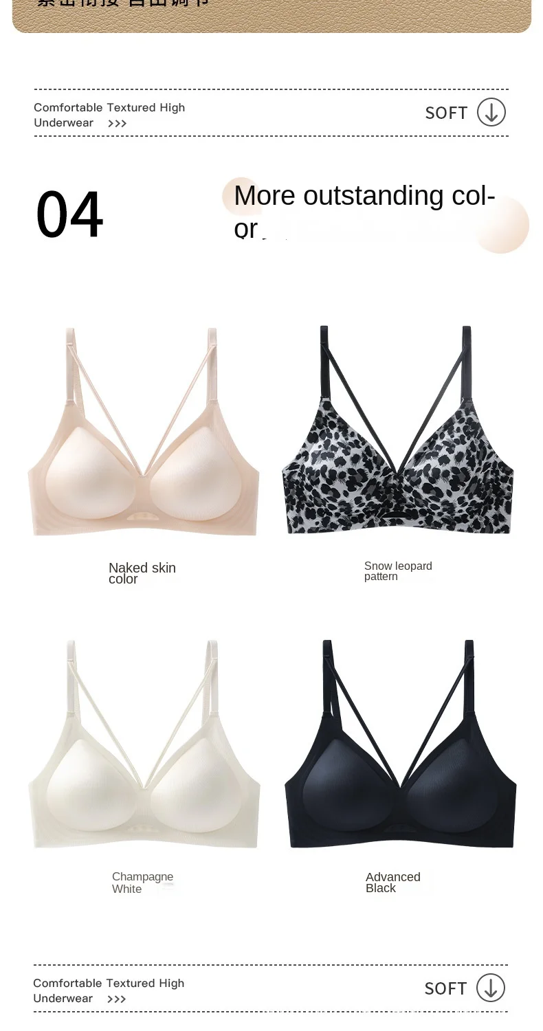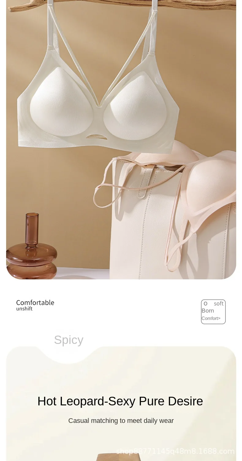 Beautiful Back Anti-sagging Adjustable Suitable Leopard Print Thin Summer Small Chest Gathered Seamless Wire Free Underwear