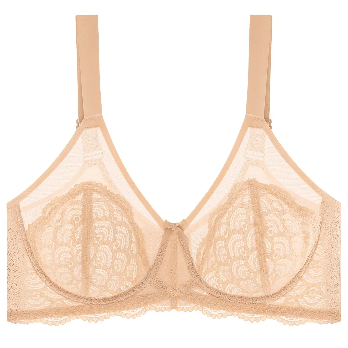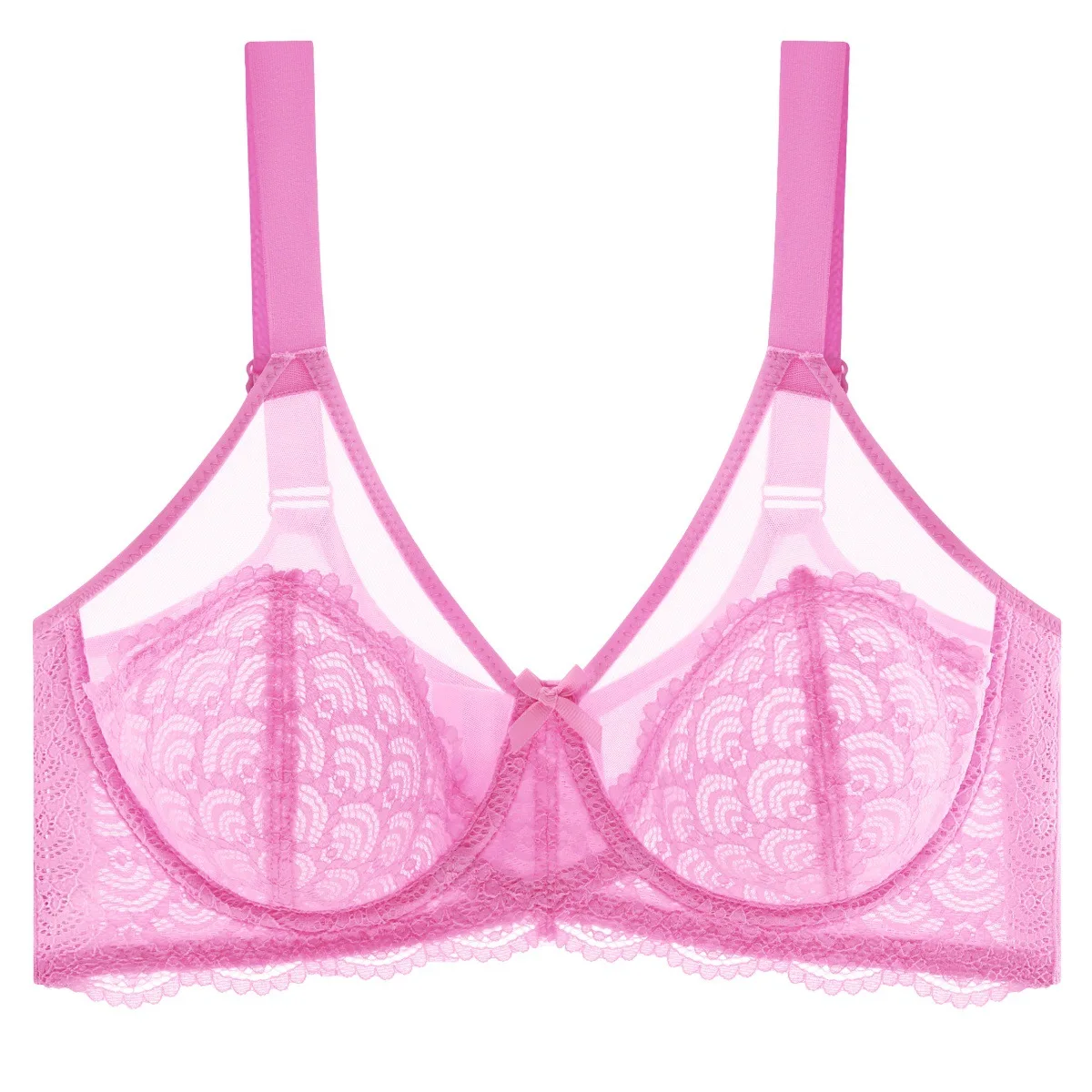 French Style Sexy Lace Bra Women's Breathable Knitted Everyday Ultra-thin Mesh Gather 3/4 Cup Underwire Large Size Underwear