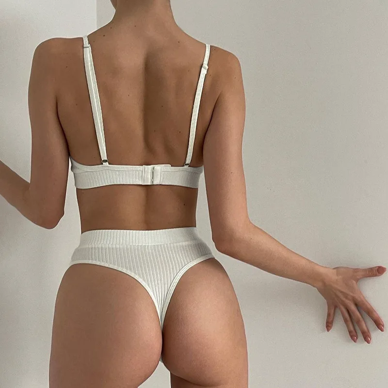 Custom Logo Femme Sexy Seamless Wire Free High-Rise Triangle Bra and Panty Set