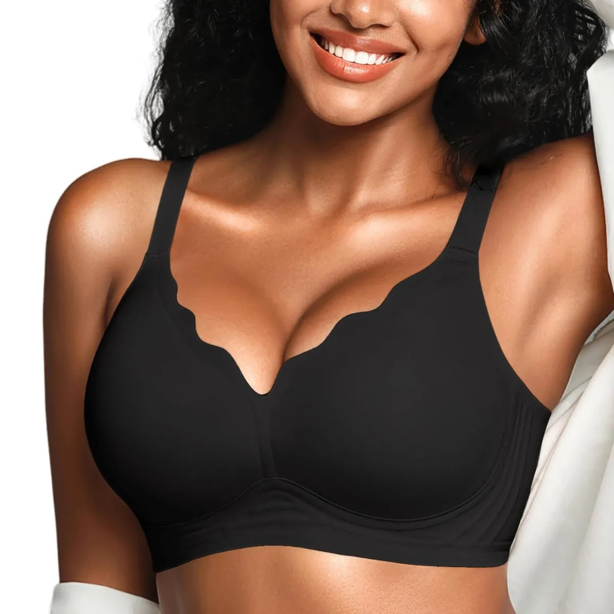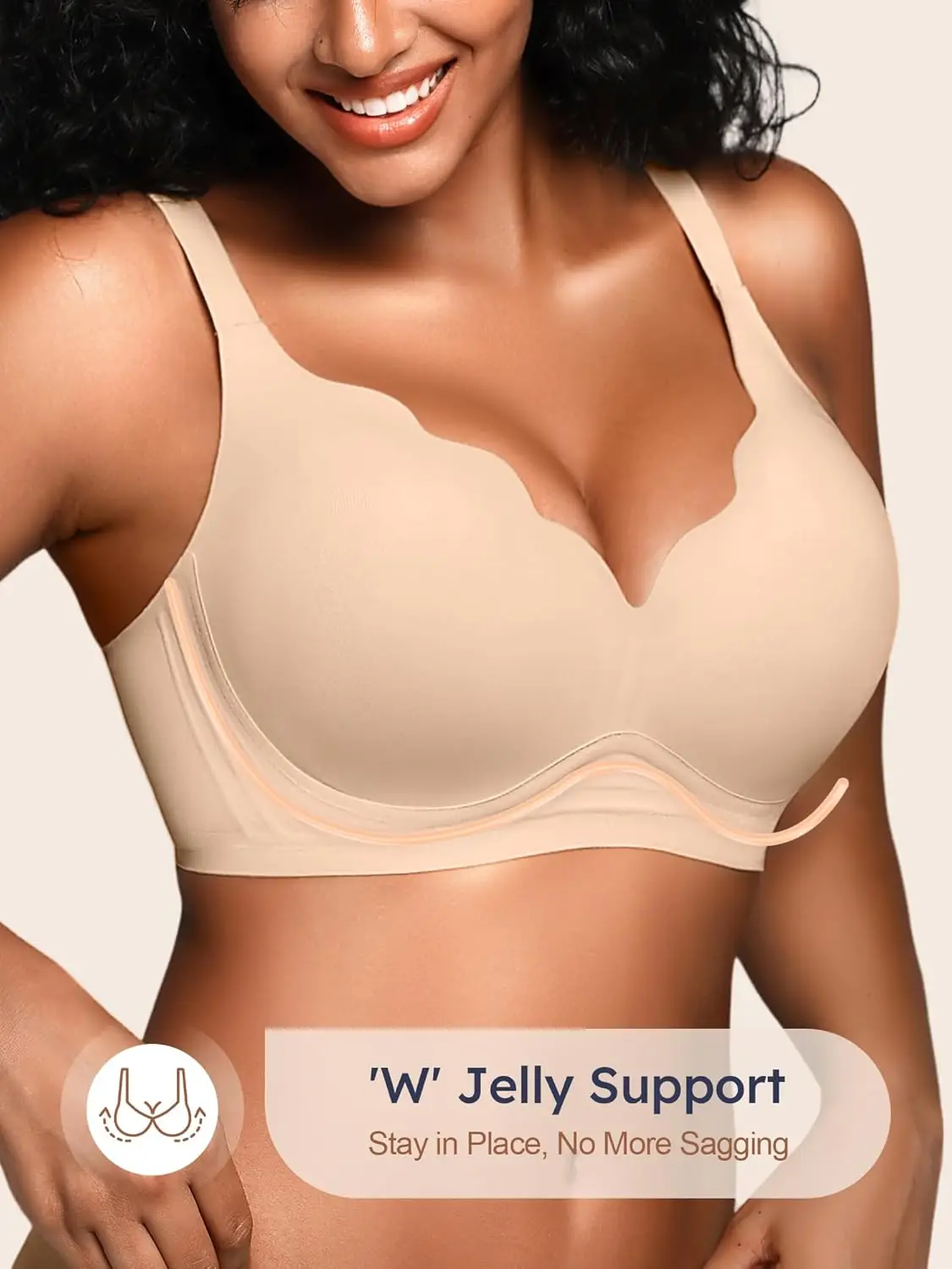 Womens Seamless Jelly Bras No Underwire Supportive Wireless Push up Full Coverage Bralette Comfort Scalloped T-Shirt Bra