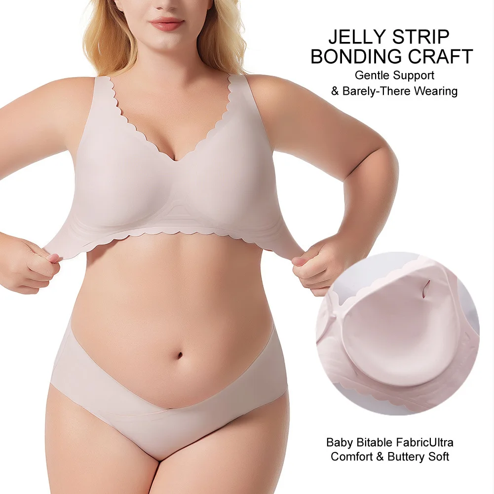 Wave Steel Ring and Gathered Design to Prevent Sagging Women's Seamless Jelly Large Size Bra