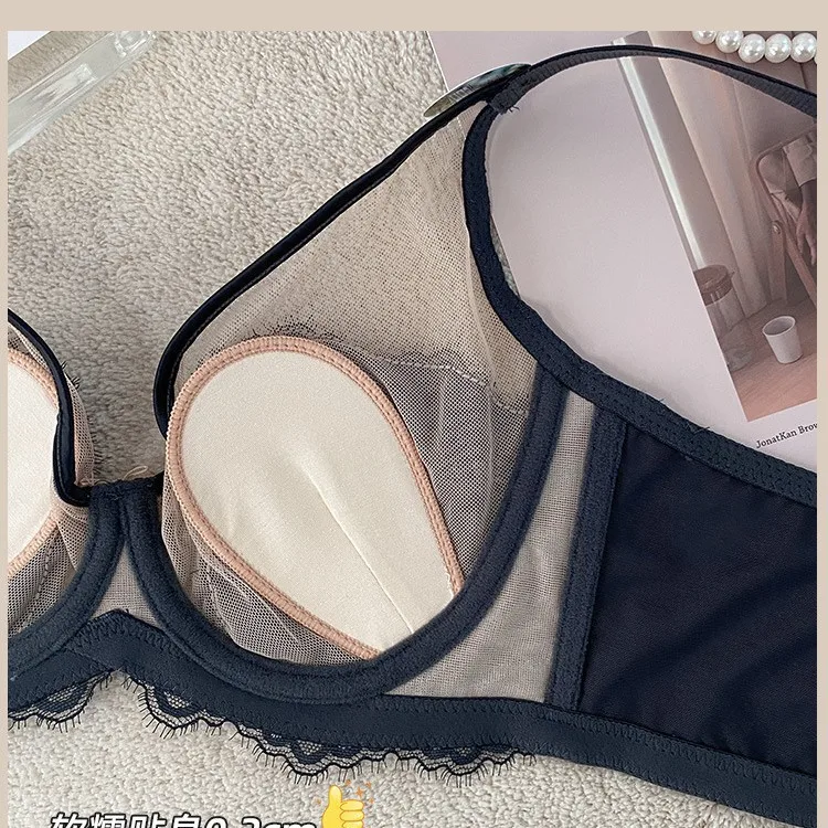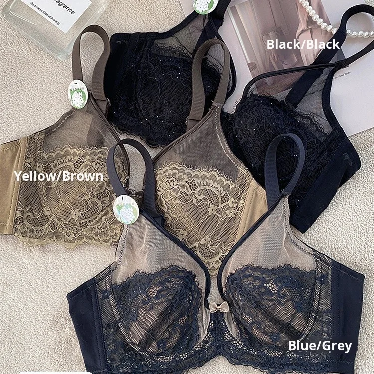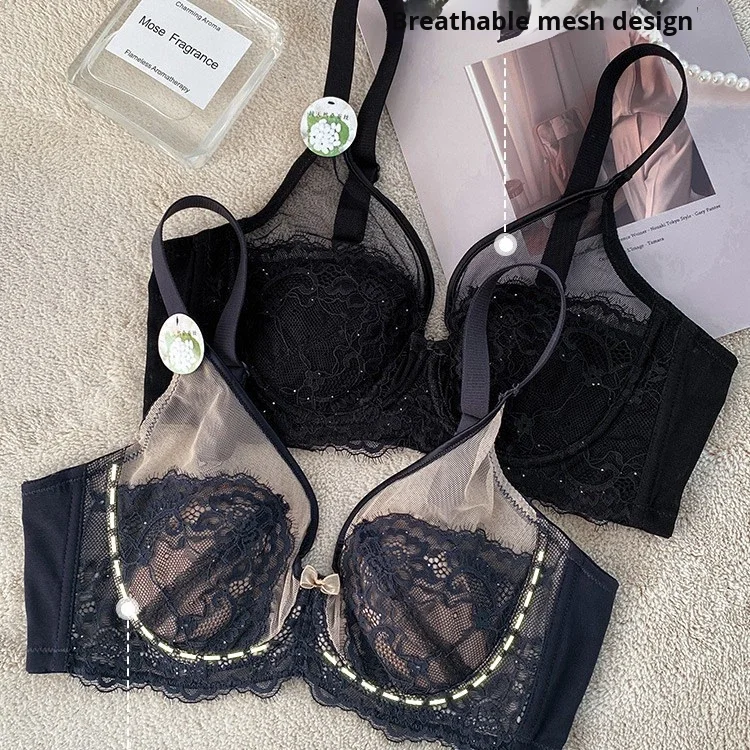 Ultra-thin Sexy Breathable Mesh Lady Underwear Collecting Accessory Breasts Anti Sagging Women's Rabbit Ears Crystal Cup Bra
