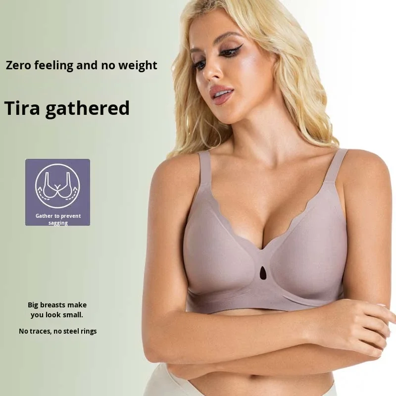 Customized Logo Seamless Plus Size Wireless Bra for Women Push up Bralettes Ladies V Neck Full Cup Padded Scalloped Bras