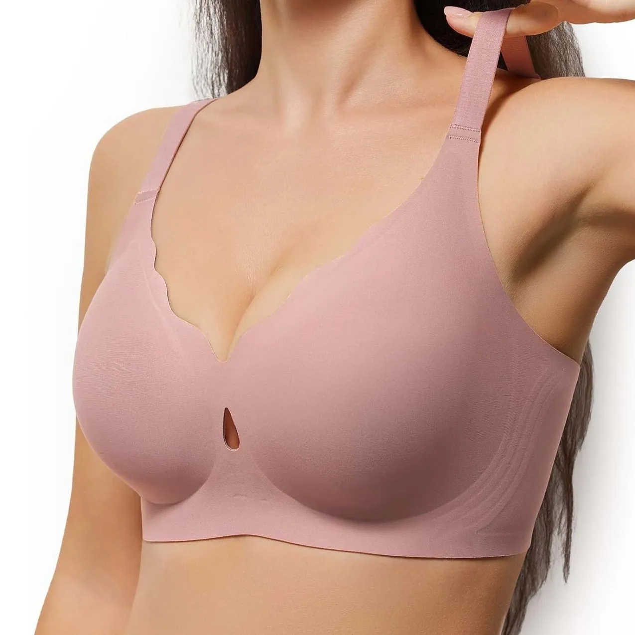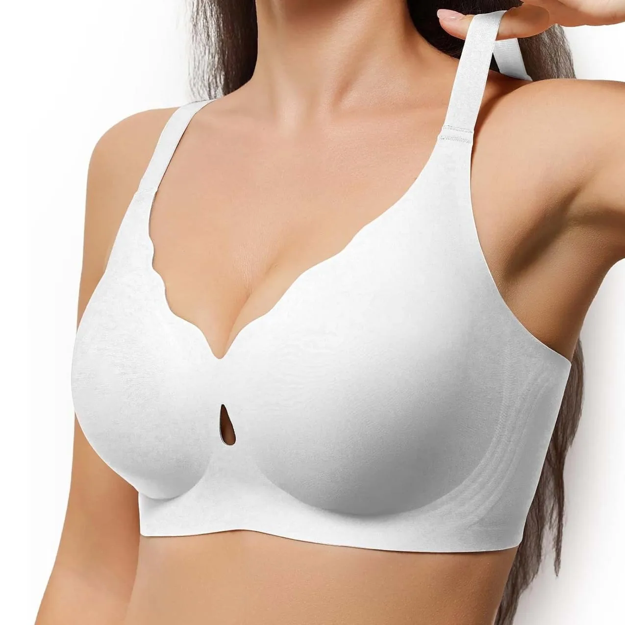 New Trend Wireless Bra for Women Custom Full Cup Ladies V Neck Support Push up Bralettes Seamless Padded Scalloped Tank Bras