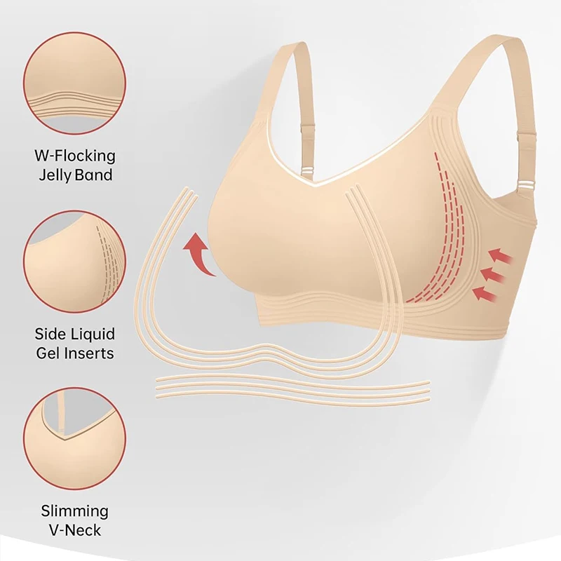 OEM Womens Seamless Push up Bras No Underwire Full Coverage Comfortable Bra V Neck Bralettes Wireless Jelly Bra