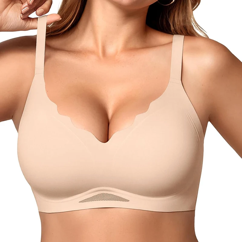 New Trend Wireless Bra for Women Custom Full Cup Ladies V Neck Support Push up Bralettes Seamless Padded Scalloped Tank Bras