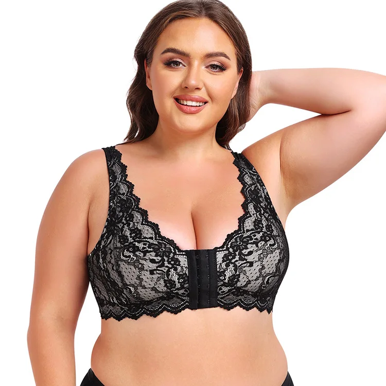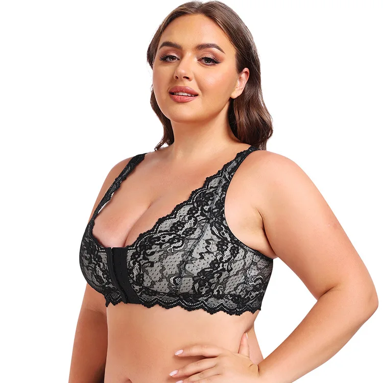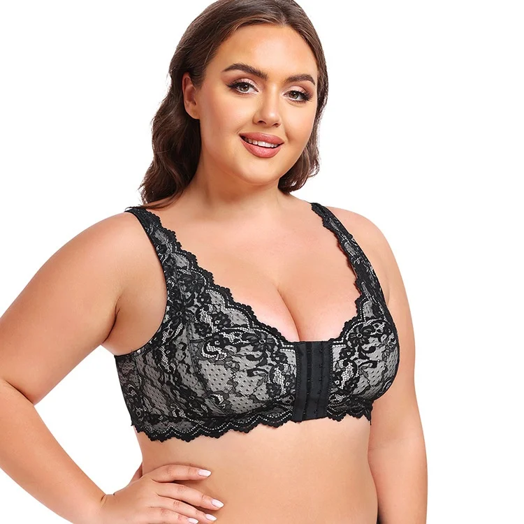 Push-Up Gothic Side Support Vest Bra Women Plus Size Lace 3/4 Cup Bra