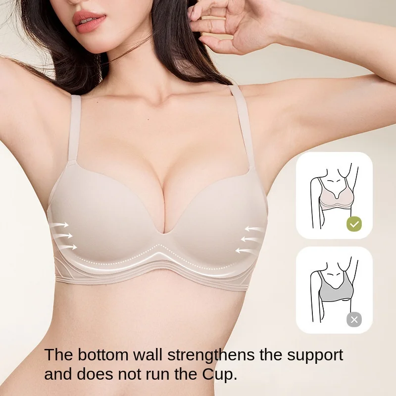 Women's Traceless Comfort Solid Push-Up Pull-Up Anti-Sagging Bra with Non-Steel Rings for Small Chest Everyday Wear Women