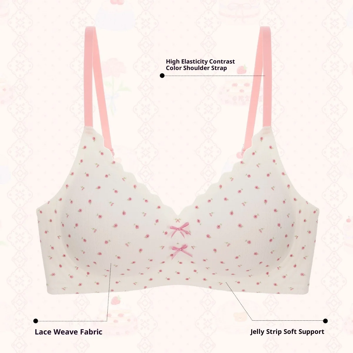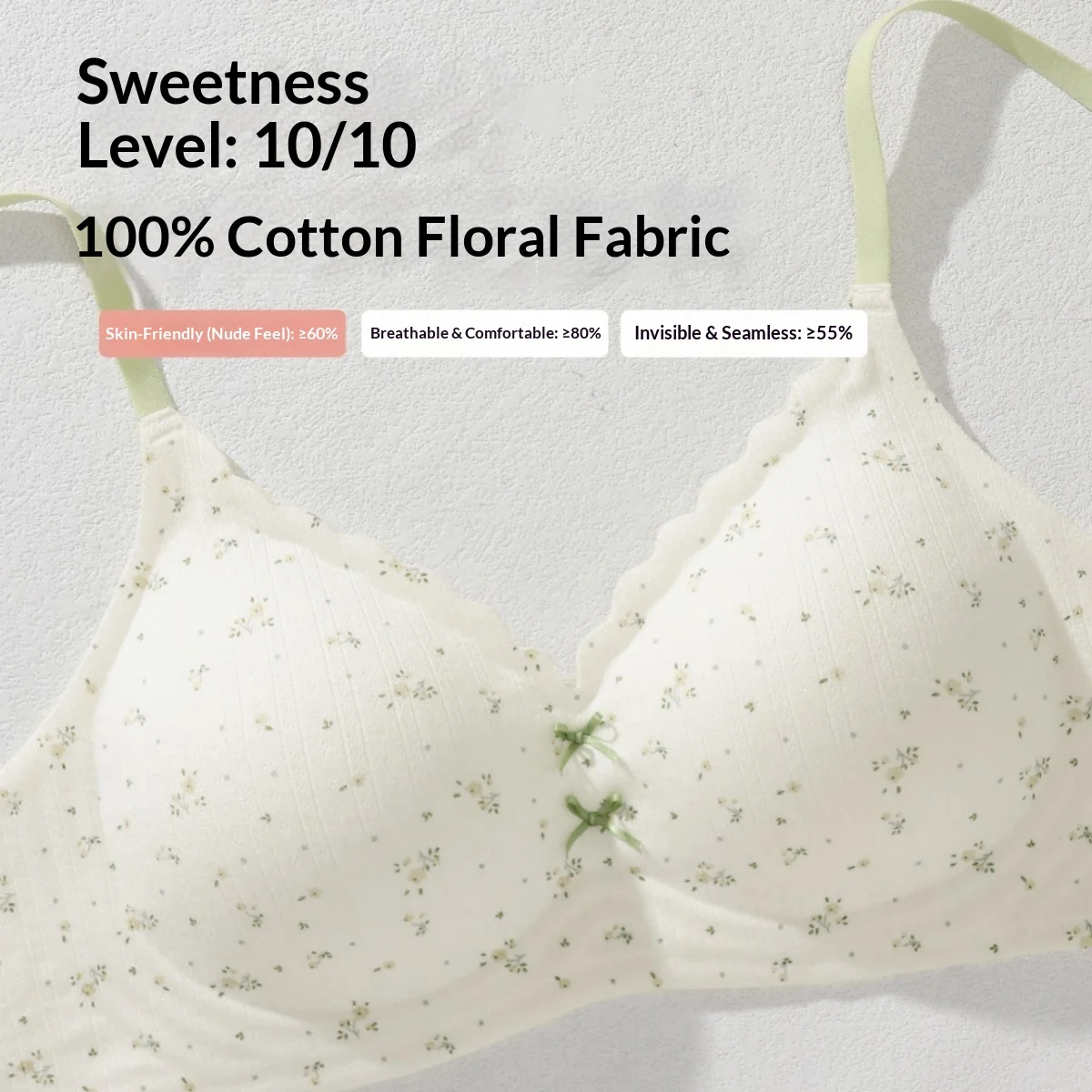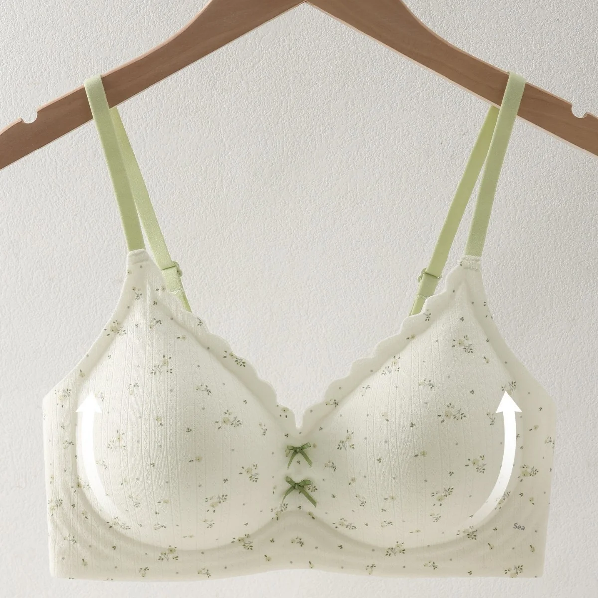 Women's Seamless V Neck Bra Thin Wire-Free Anti Sagging Triangle Cup with Bow Floral Pattern