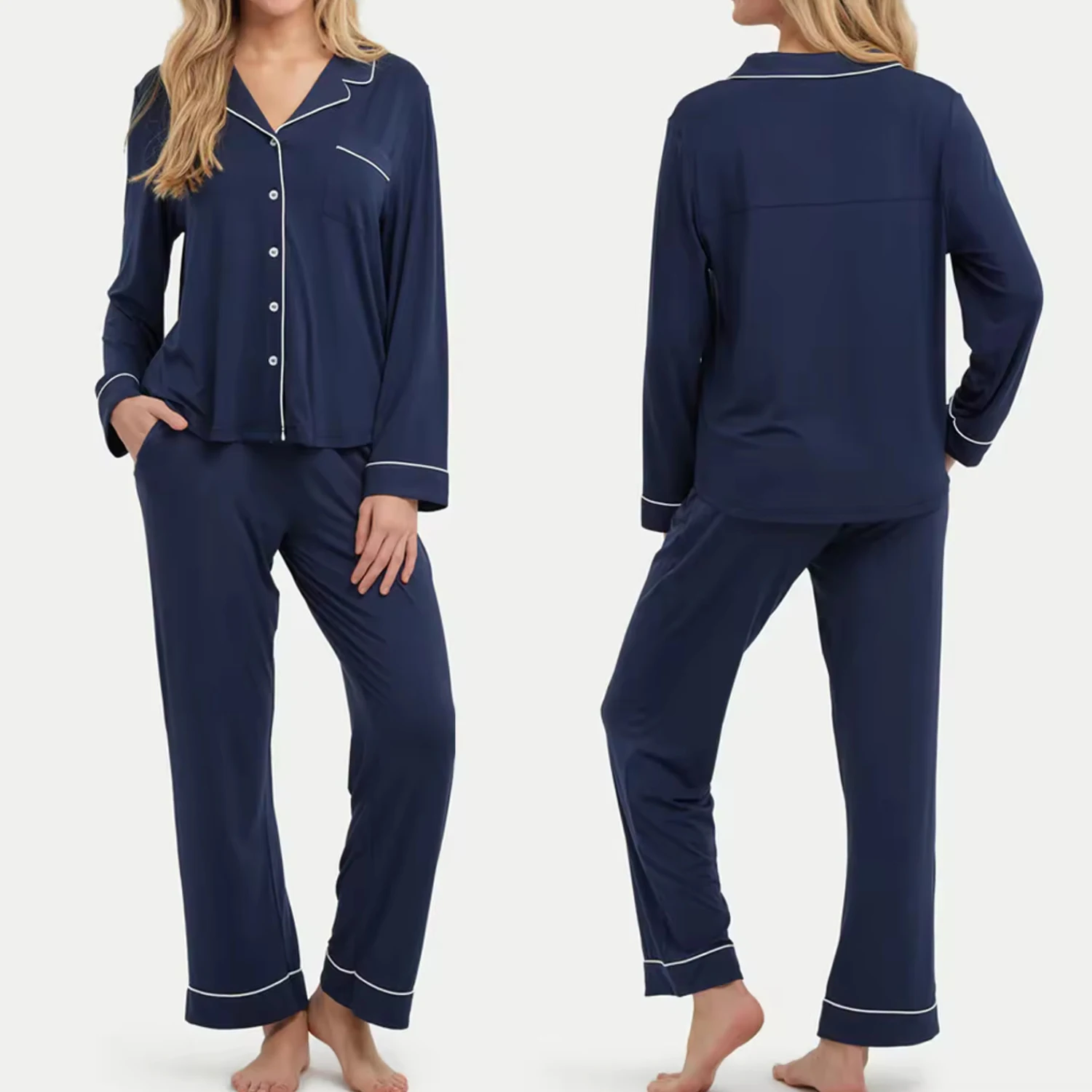 2 Piece Comfy Bamboo Womens Pajama Set Loungewear Ladies Pyjamas Long Sleeve Pj Set Adult Lounge Wear Set