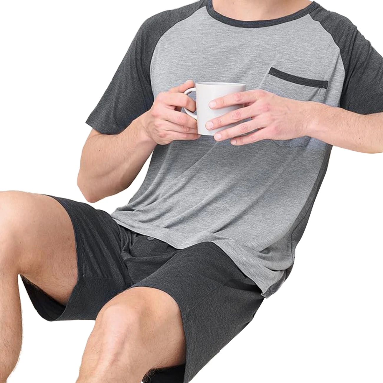 Breathable Bamboo Fiber Men's Pajamas Custom Pyjamas Soft Adult Pajama Comfy Loungewear Pj Shorts Set
