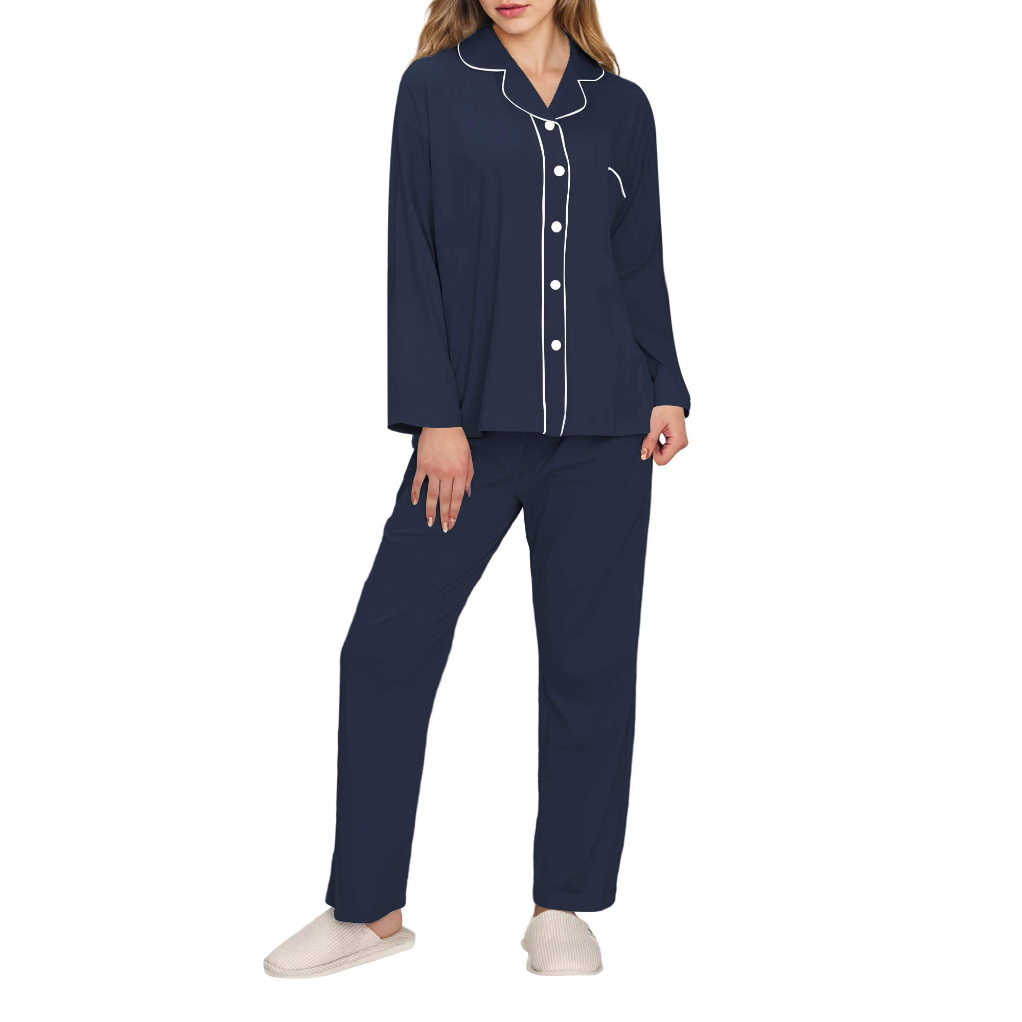 Cozy 100% Cotton Sleepwear Women Pajamas Solid Lounge Wear Sets Pjs Ladies Loungewear Custom Pyjamas