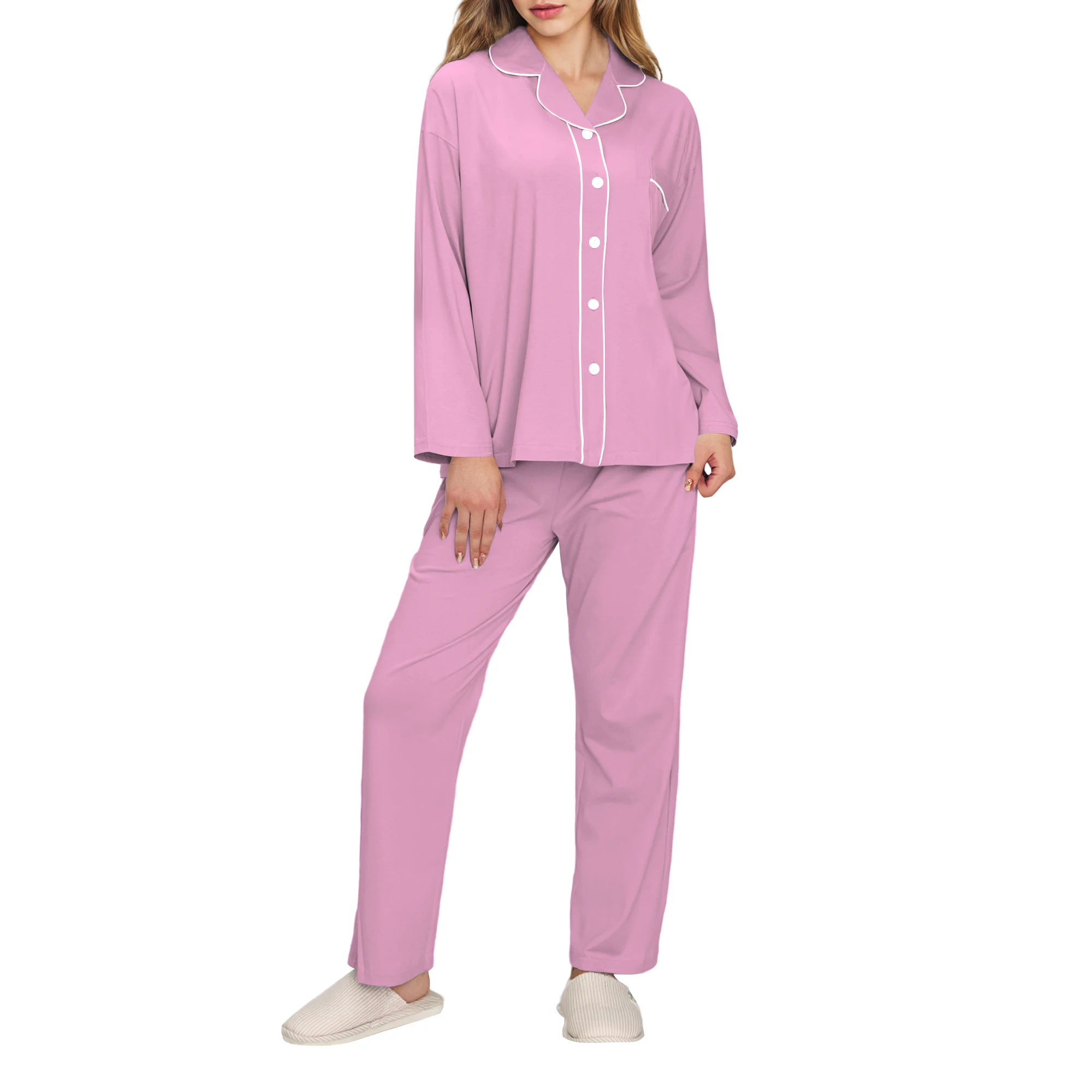 Casual Women's Sleepwear 100% Cotton Pajamas Lounge Wear Set Custom Pjs Soft Loungewear for Ladies