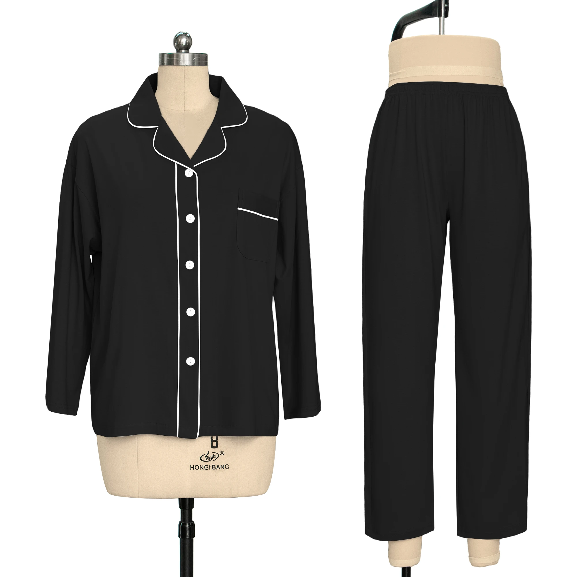 2 Piece Women's Sleepwear Set 100% Cotton Pajamas Long Sleeve Loungewear Pyjamas Custom Pjs for Ladies