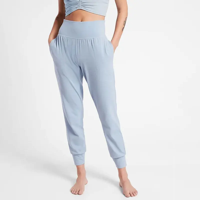 Bamboo Knit High Waist Pant Breathable Soft Fabric Heather Rib Joggers Clothing Workout Yoga Gym Legging