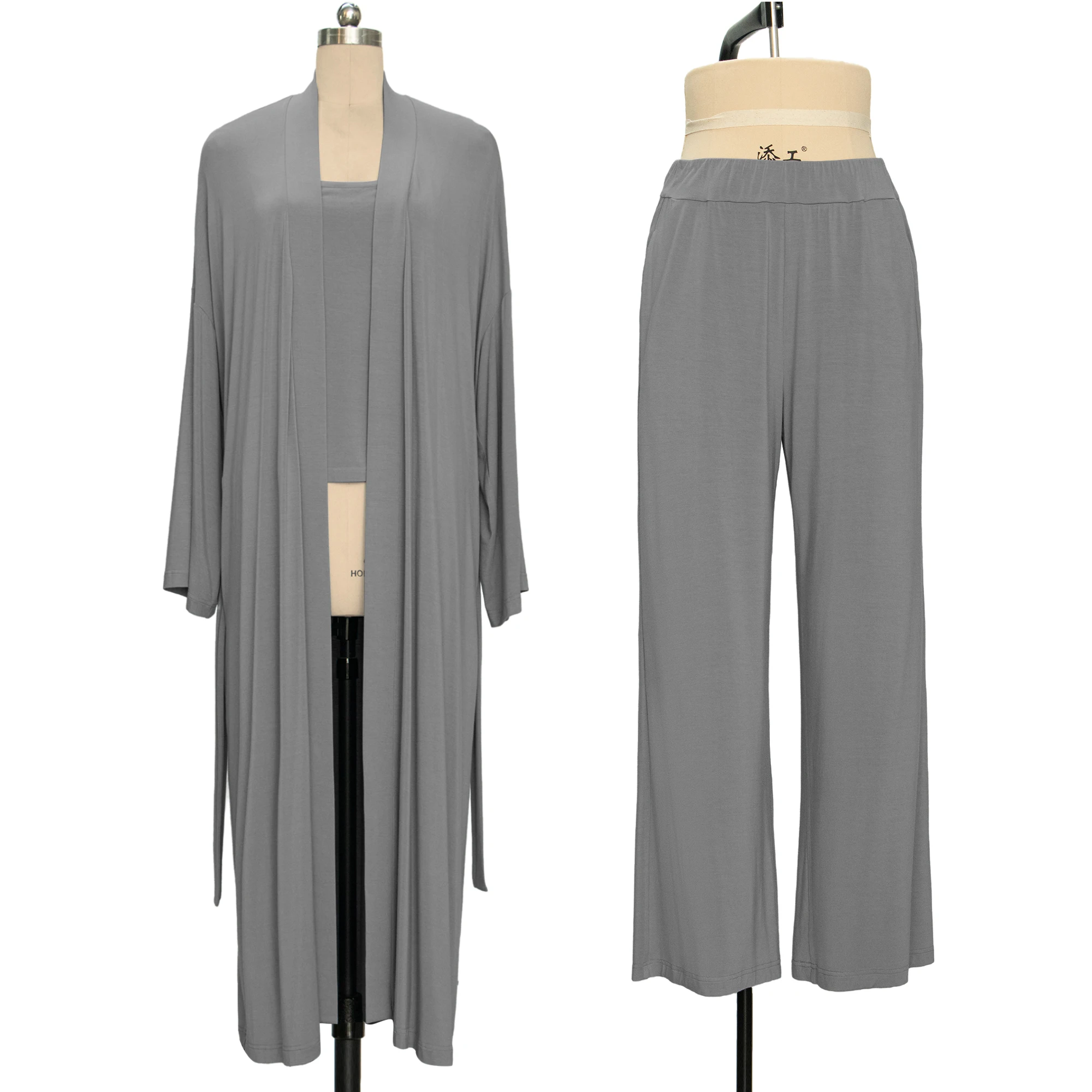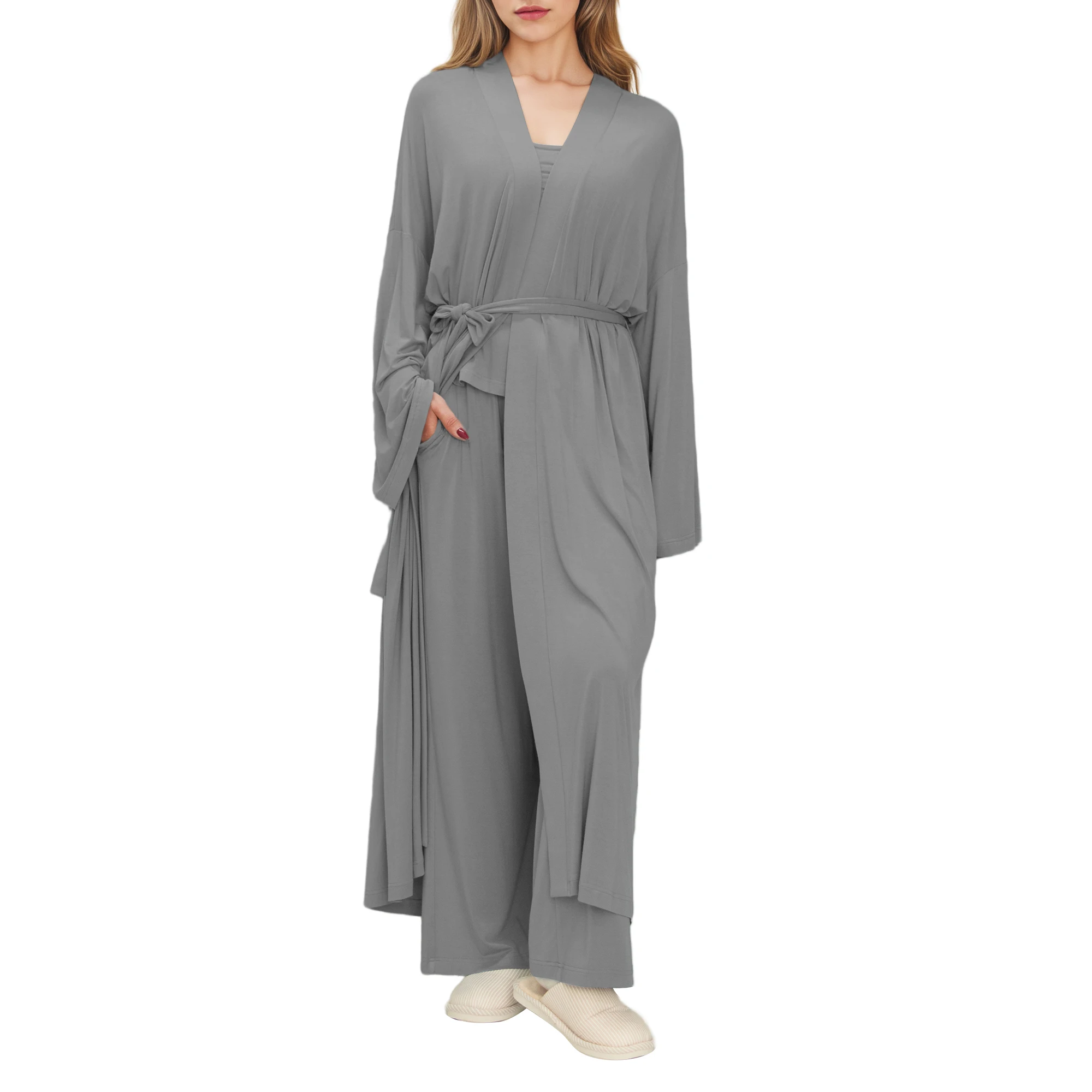 Women's Sleepwear Set Robe Cami and Pants Bamboo Viscose Lounge Wear Set Ladies Loungewear 3 Piece Pajamas