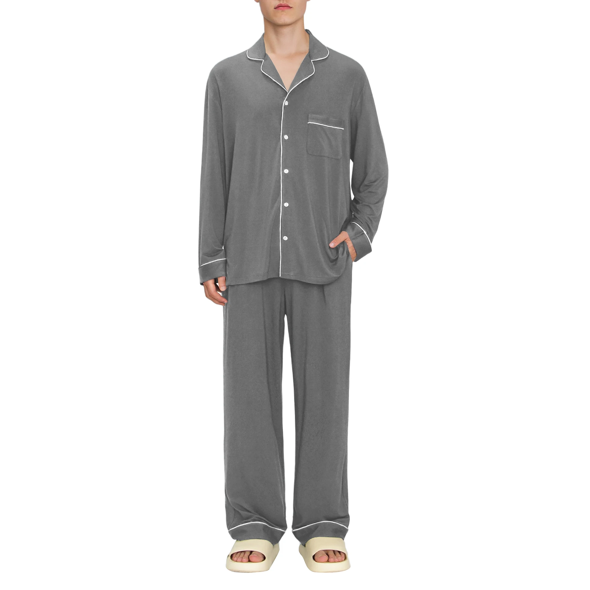 Breathable Men Loungewear Bamboo Viscose Sleepwear Lounge Wear Sets Custom Pjs Mens Pajamas