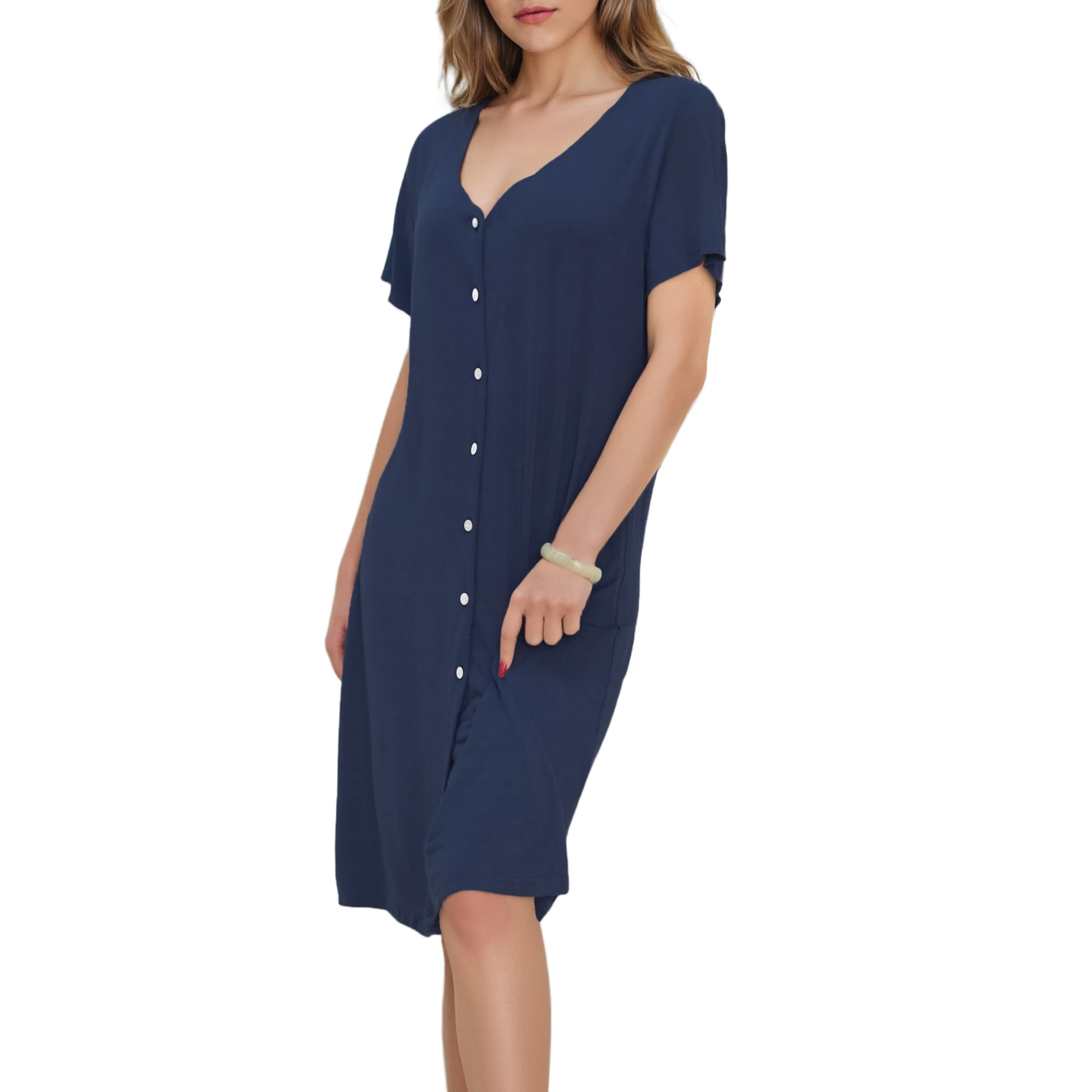 V-neck Women Nightshirt Custom Nightgown Bamboo Viscose Sleepshirt Sleepwear Ladies Pajama Nightdress