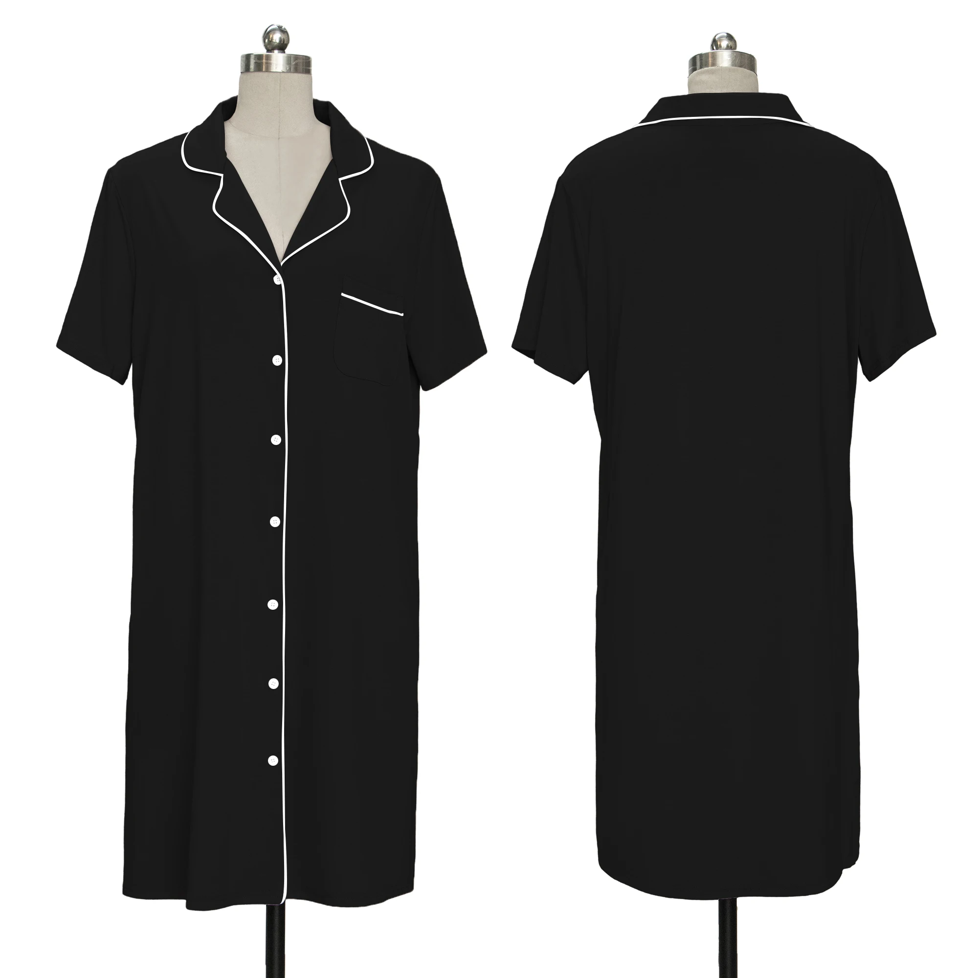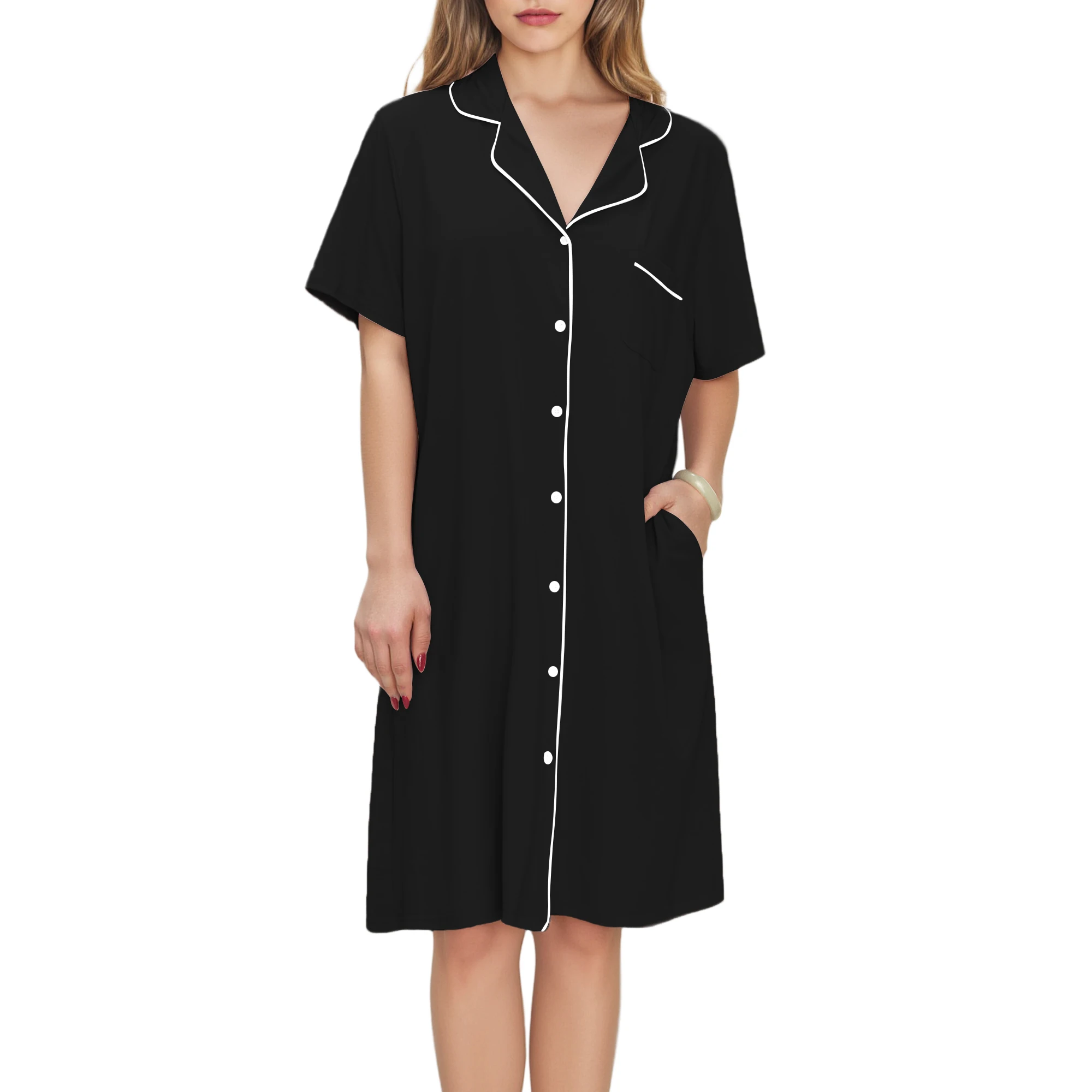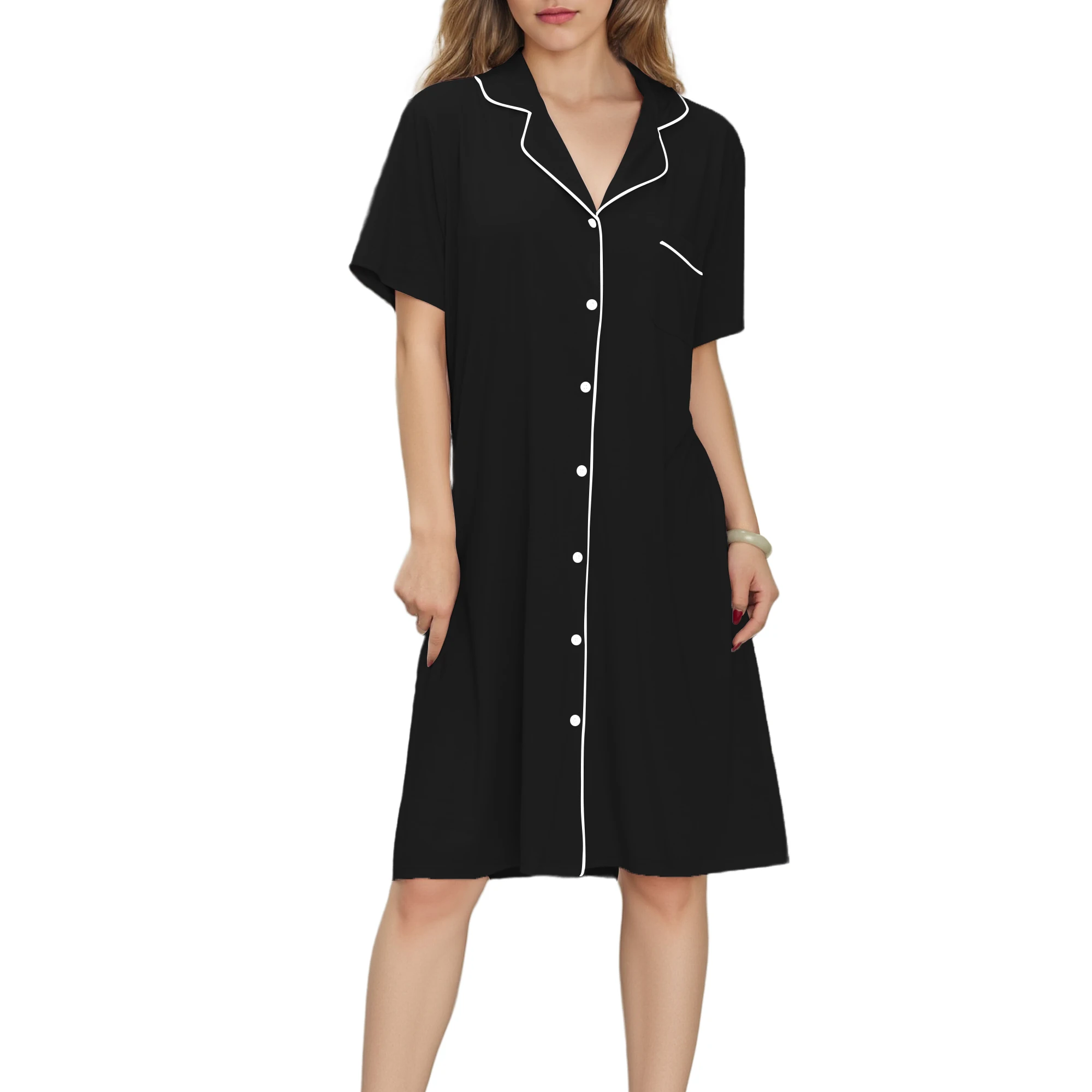 Women's Nightshirts Bamboo Viscose Nightgown Custom Pajama Sleep Dress Short Sleeve Sleepshirt for Ladies