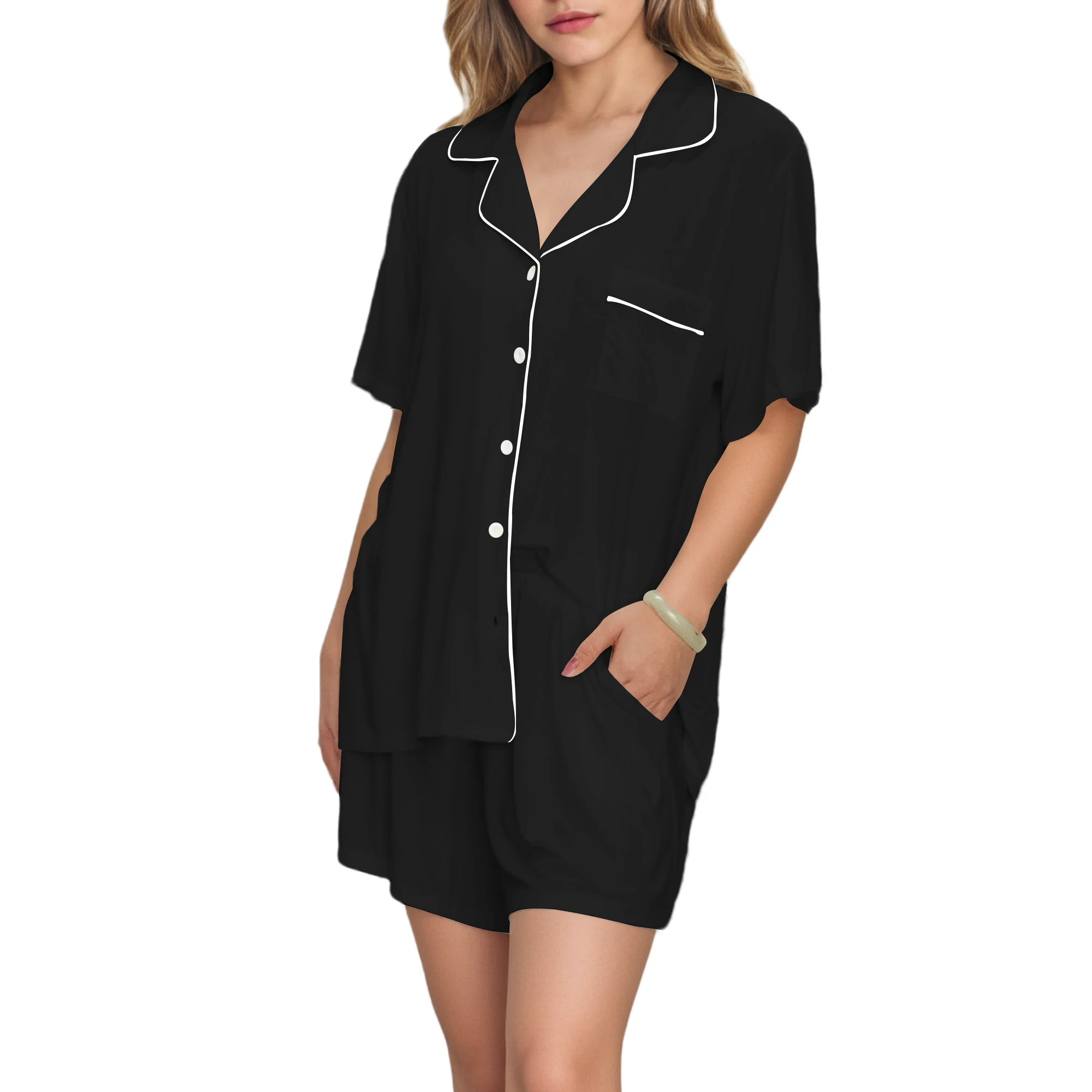 Women's Summer Pajamas Bamboo Viscose Loungewear Soft Sleepwear Ladies Lounge Wear Set Short Sleeve Pjs