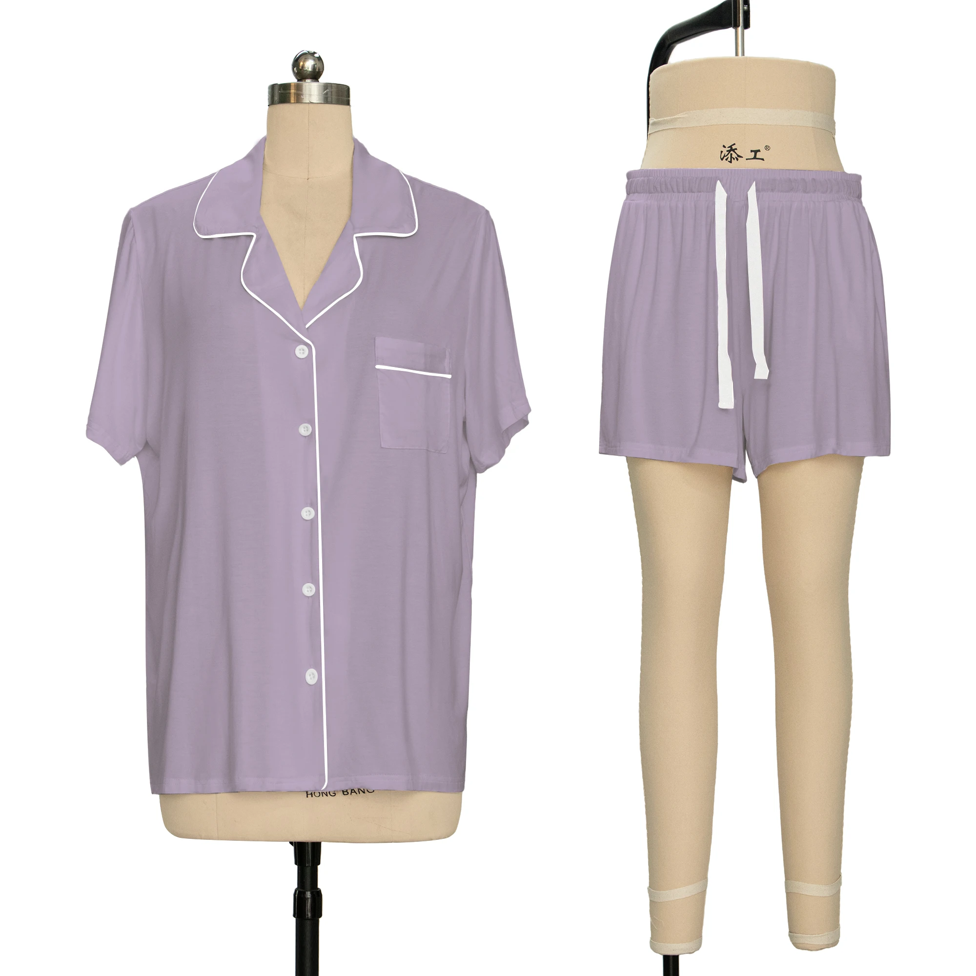 Solid Color Women's Summer Pajamas Set Bamboo Viscose Sleepwear Custom Pjs Loungewear for Ladies