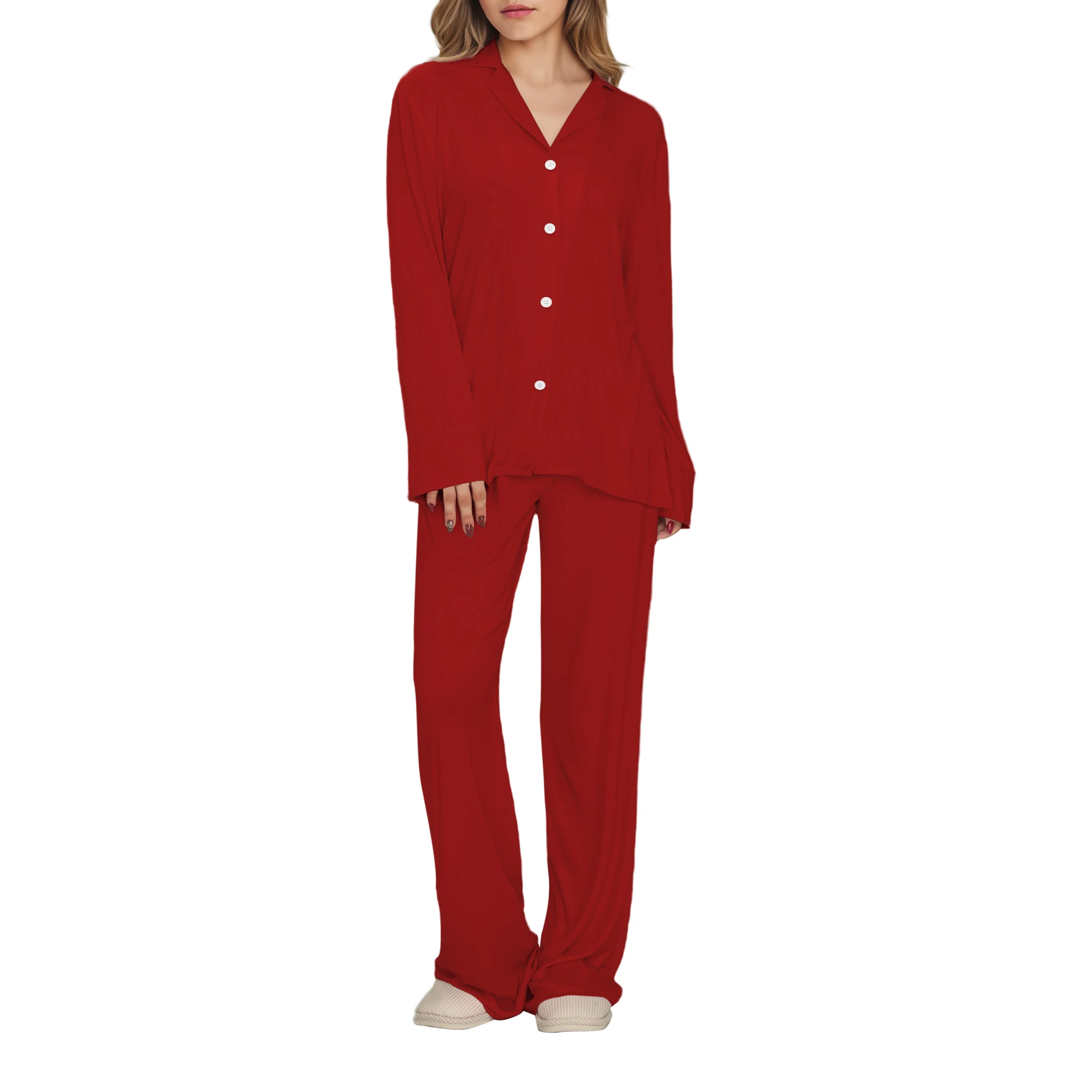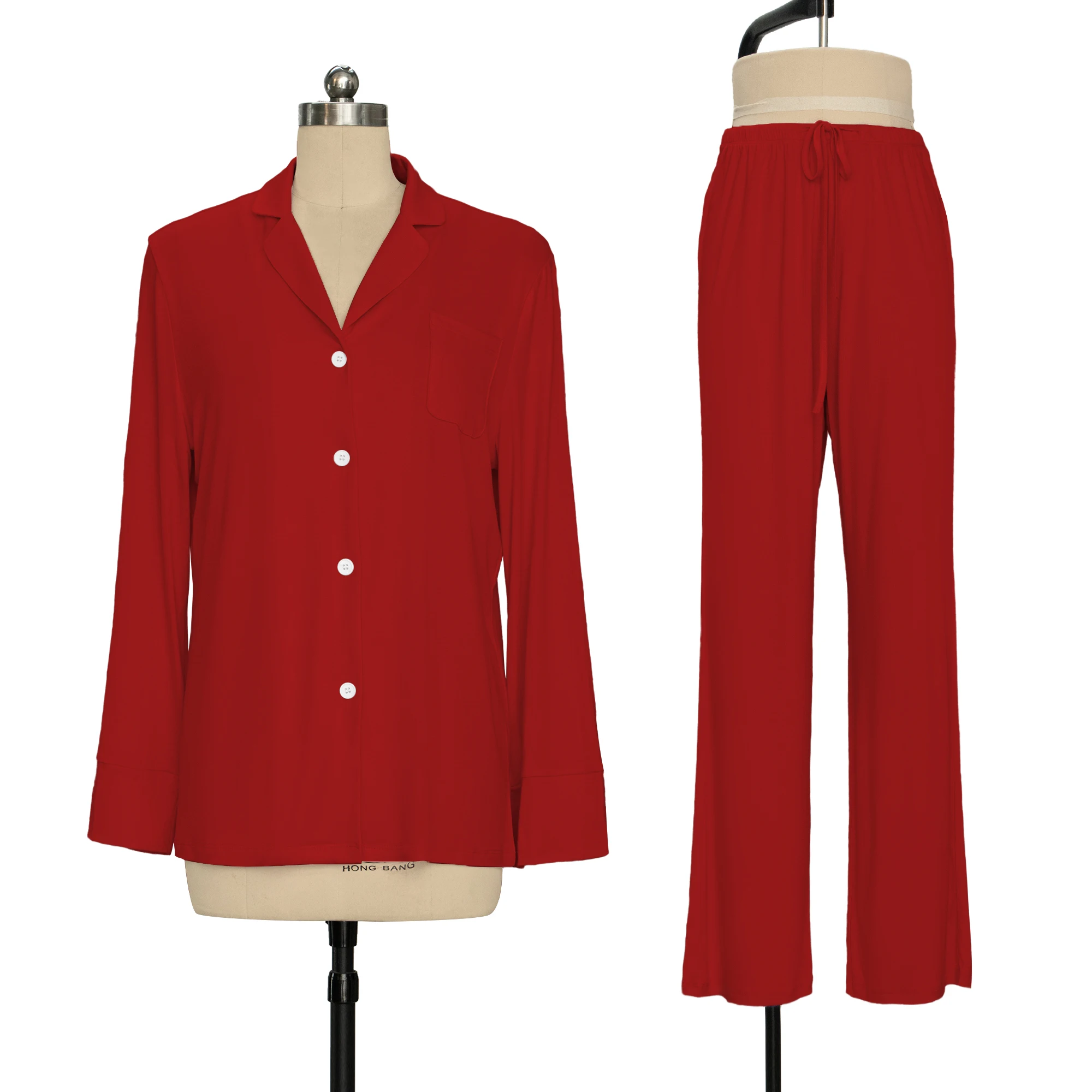 Skin Friendly Ladies Sleepwear Set Bamboo Viscose Loungewear Red Women's Pajamas 2 Piece Custom Pj Set