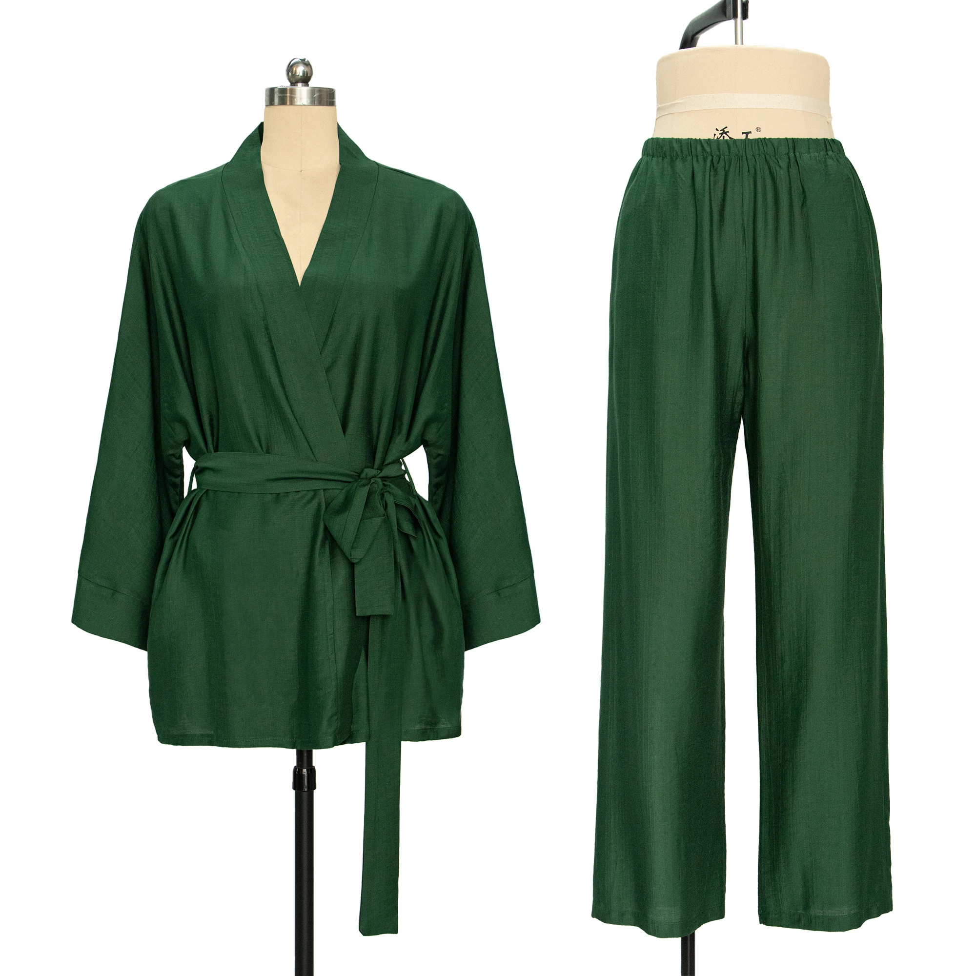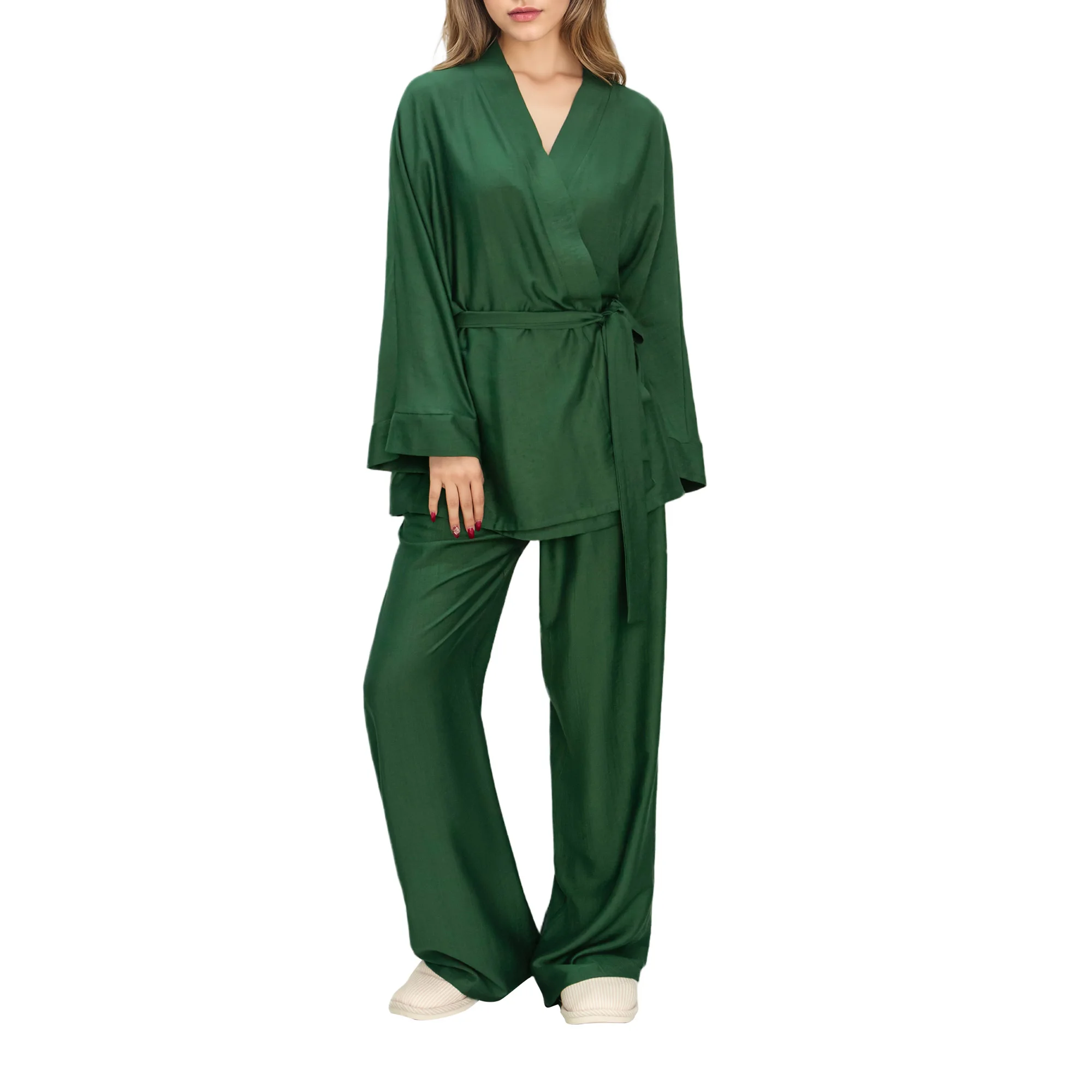 V Neck Women's Sleep Robe Set Viscose Pajamas Lounge Wear 2 Piece Ladies Sleepwear Set Loungewear Custom Pjs