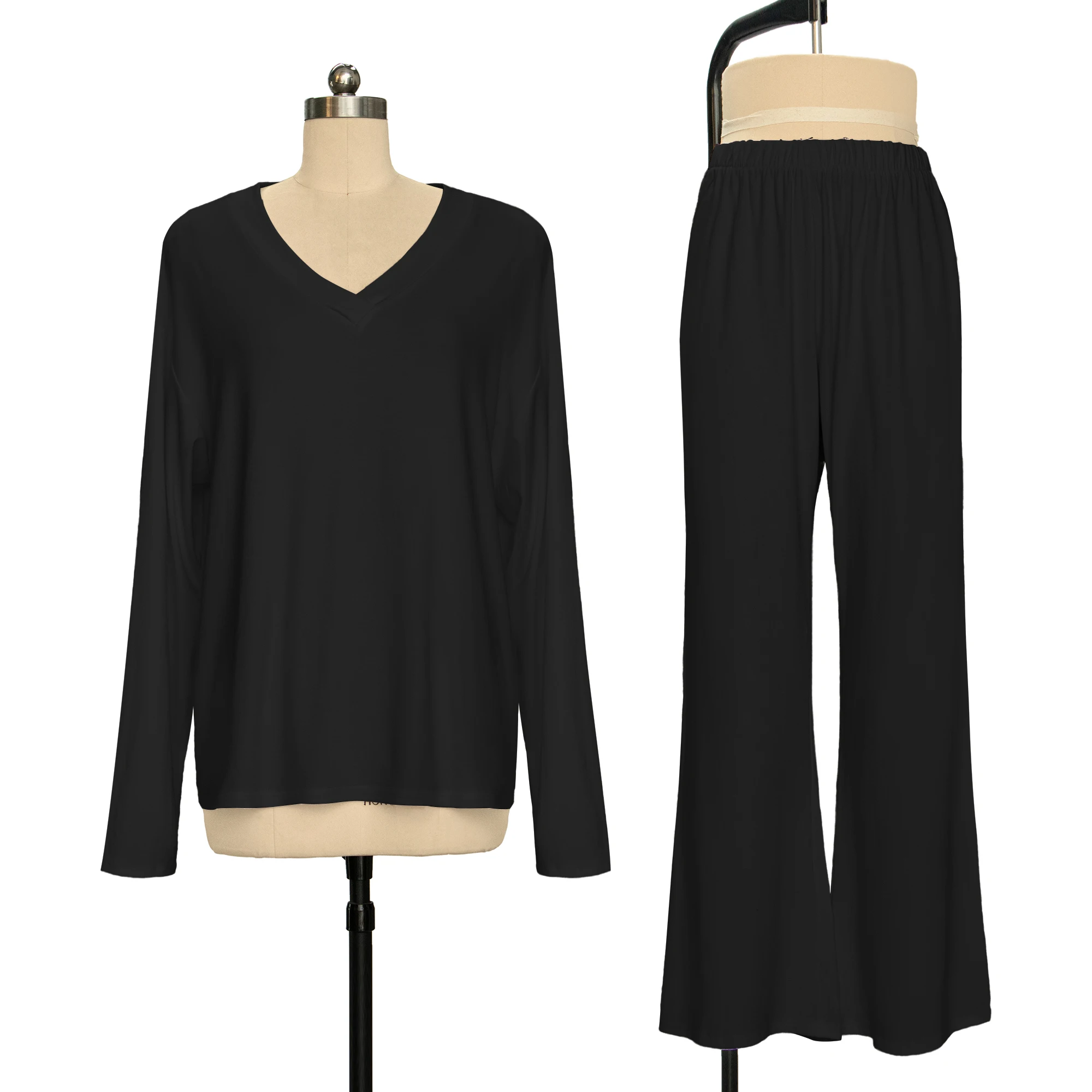 Customized Women's Sleepwear Set Bamboo Viscose Loungewear Custom Pjs Black Soft Lounge Set Ladies Pajamas