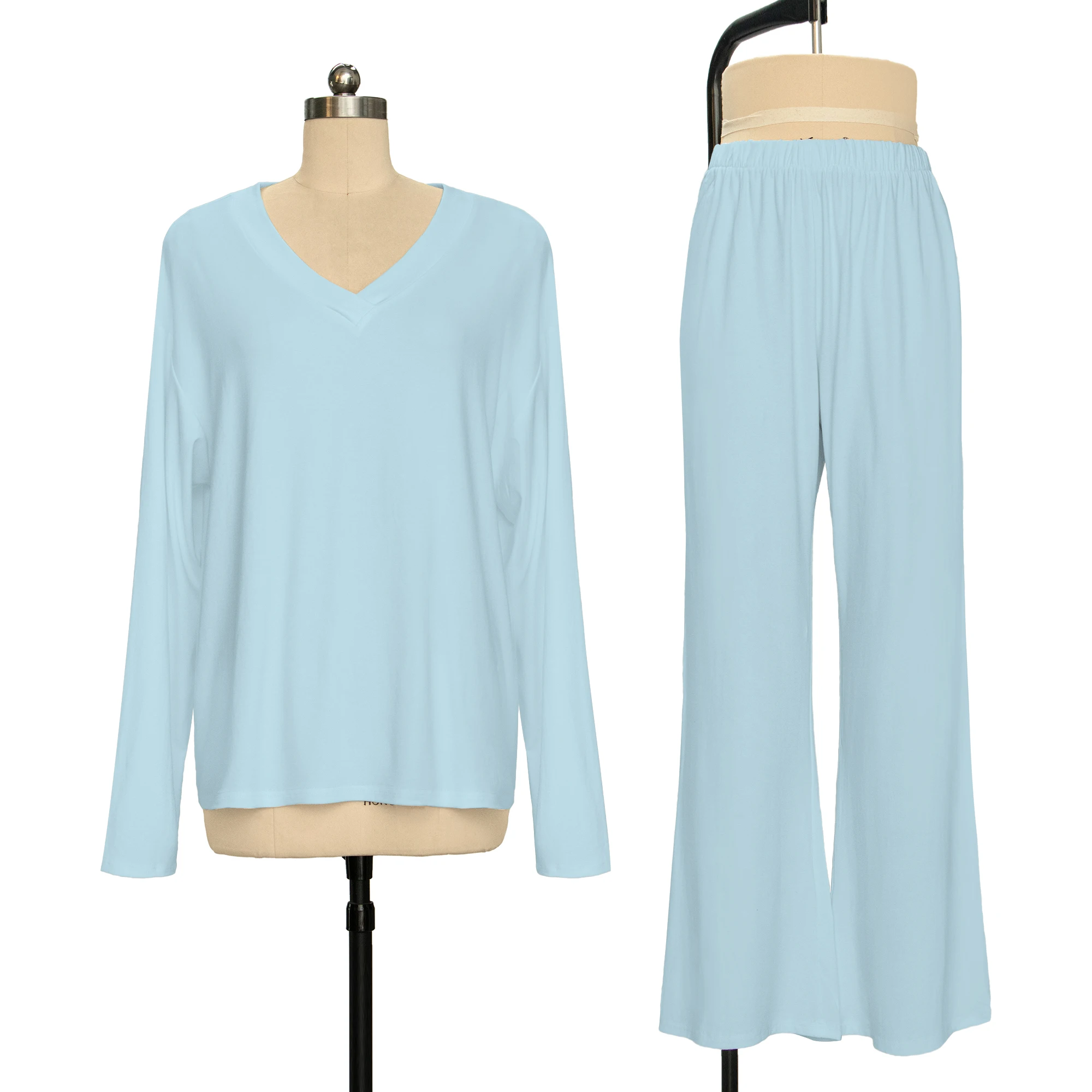 Soft Loungewear Ladies Sleepwear Set Bamboo Viscose Pajamas V Neck Pyjamas Adult Custom Pjs for Women