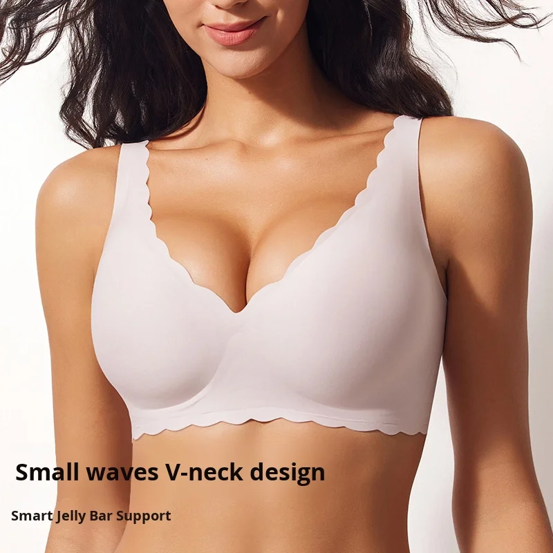 New Trend Wireless Bra for Women Custom Full Cup Ladies V Neck Support Push up Bralettes Seamless Padded Scalloped Tank Bras