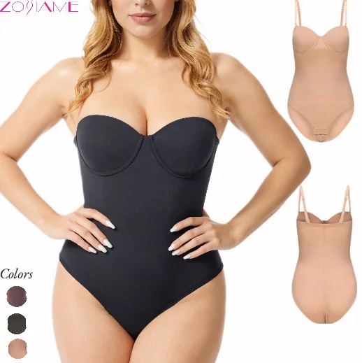 Elegant Plus Size Women's Formal Gown Strapless Tummy Control Waist Cinching Bodysuit with Underwire Breathable Body Shaping