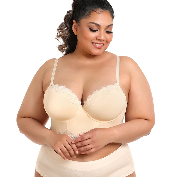 Customized Logo Seamless Plus Size Wireless Bra for Women Push up Bralettes Ladies V Neck Full Cup Padded Scalloped Bras