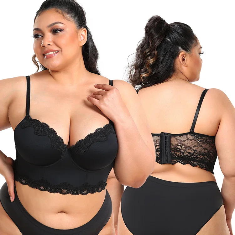 Women's Large Cups Wireless Bra Plus Size Ladies Vest Camisole with Lace Longline Chest Support Solid Pattern Big Girls' Bras