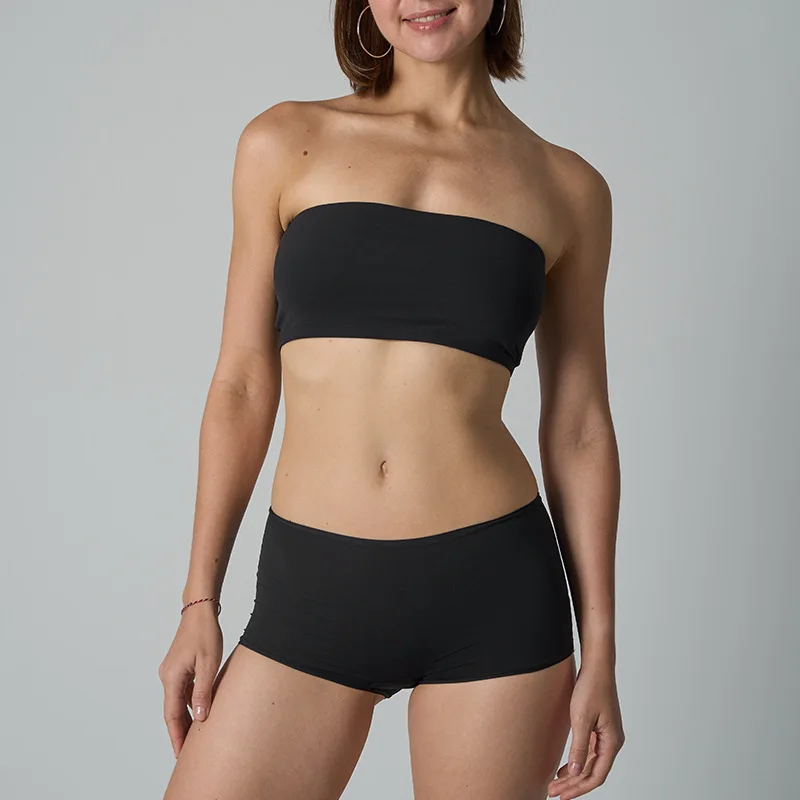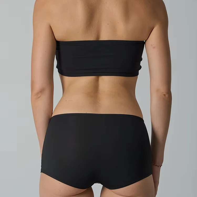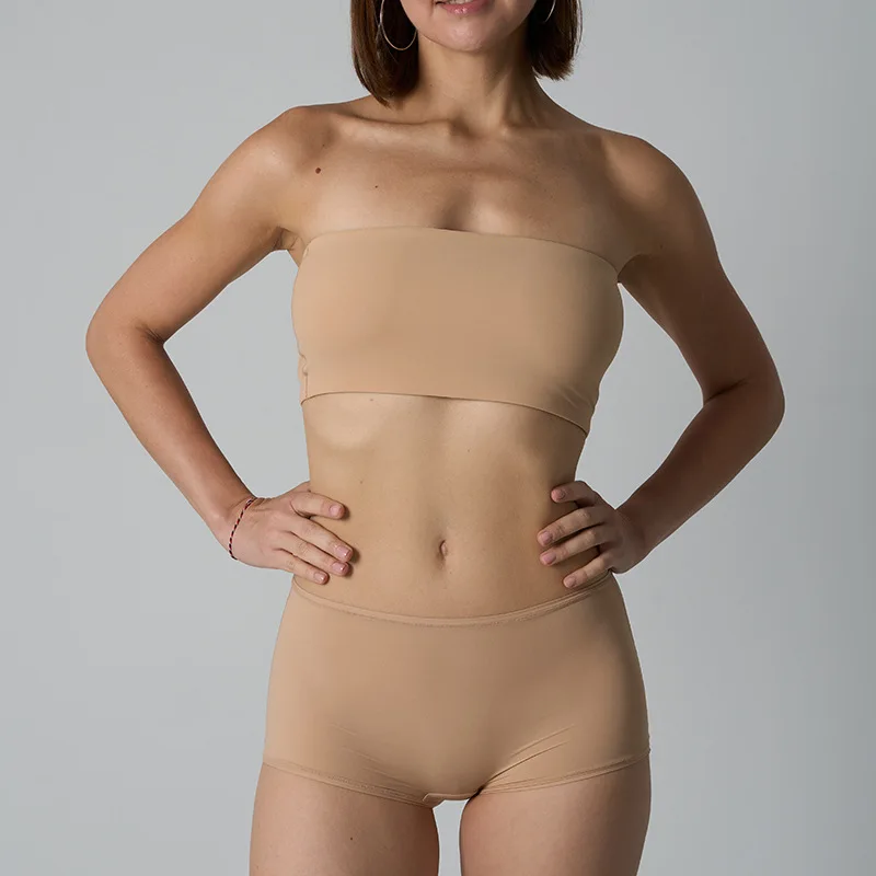 Trendy Elegant Strapless One-Piece Bare-Feel Seamless Undershirt Panties Underwear Set Tube Top for Women