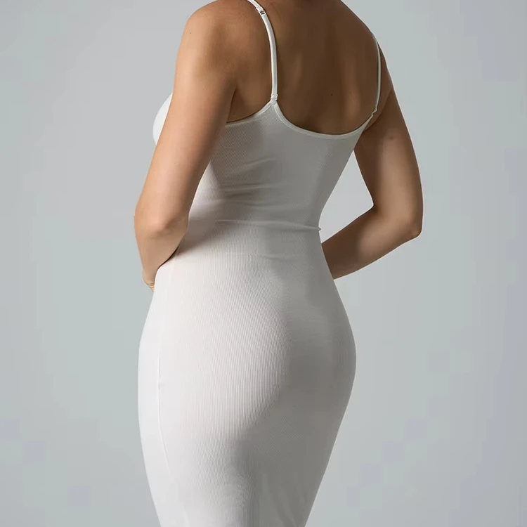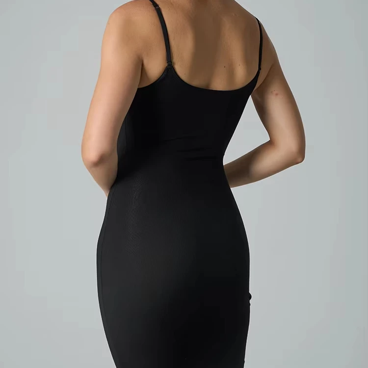 Trendy Modal Rib-Knit Spaghetti-Strap High-Stretch Slim-Fit Slimming Bodycon Plus-Size Lounge Dress for Women