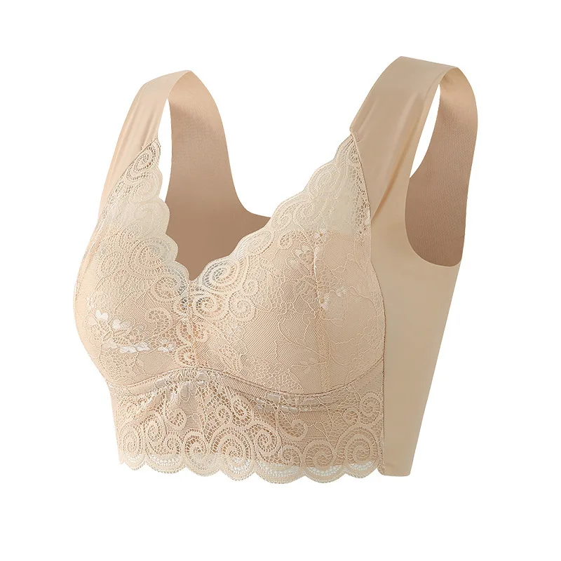New Trend Wireless Bra for Women Custom Full Cup Ladies V Neck Support Push up Bralettes Seamless Padded Scalloped Tank Bras