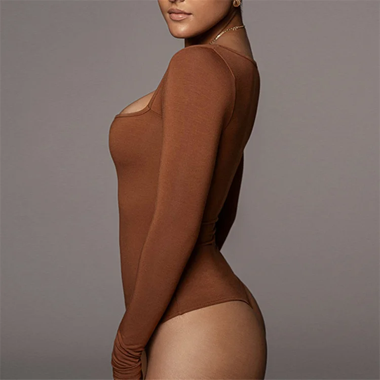Wholesale Sexy Slim Bodysuit Type Female Long Sleeve Square Collar Basic Bodysuit for Women One Piece
