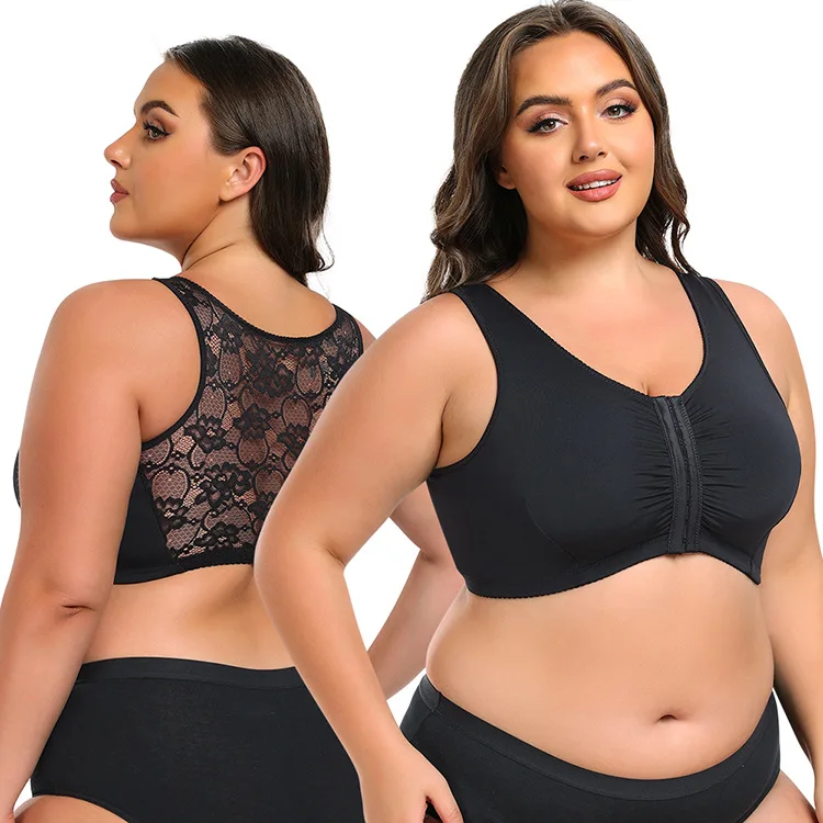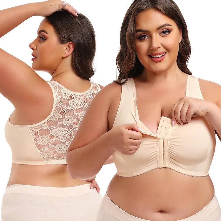 Women's Large Full Cup Lace Bra Front Closure Open Plus Size Underwear Lace Front Pushing Breasts Hiding Back Fat Panties