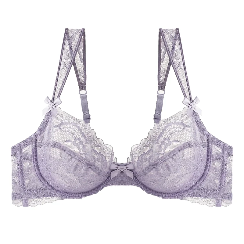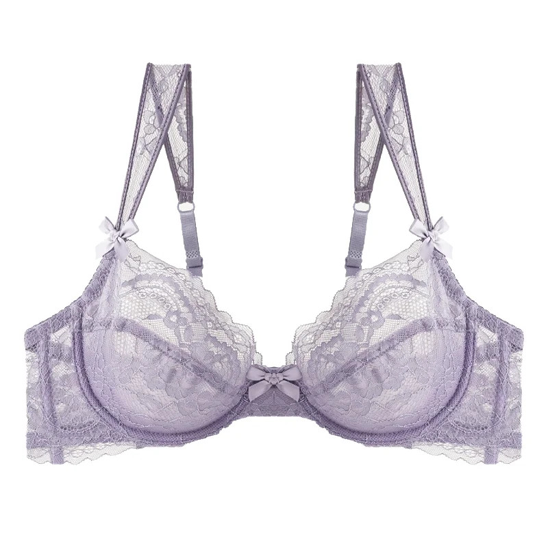 Ultra-Thin Transparent Women's Bra Thongs Set Underwire 3/4 Cup Floral Pattern Adjustable Straps Sexy Breathable Factory