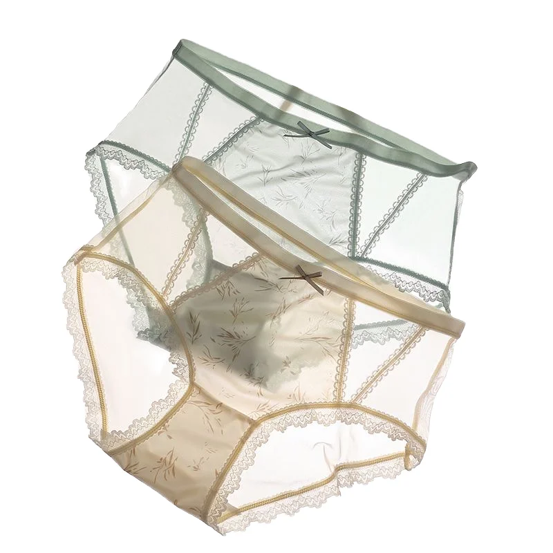 Sexy Lace Bikini Panties Everyday Solid Knitted Breathable Soft Stretch Fabric Comfortable Mid Rise Women's Underwear
