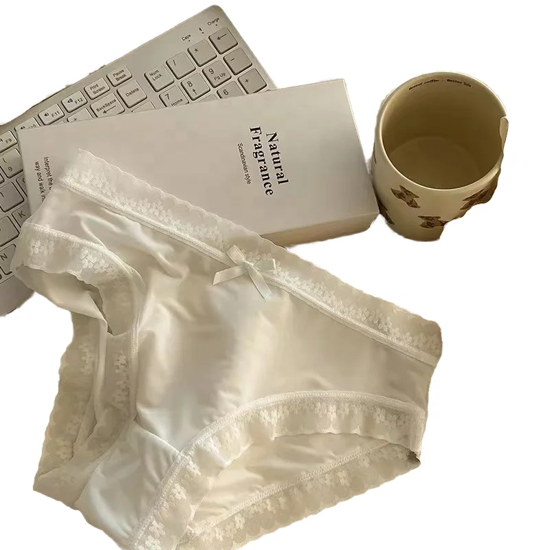 Popular Daily Wearing Summer Comfortable Women's Mid-Waist Boyshort Thin Plain Dyed Sexy Lace Edge Breathable Nylon/Cotton