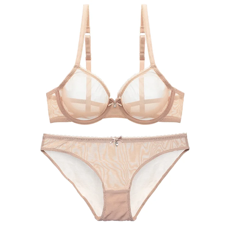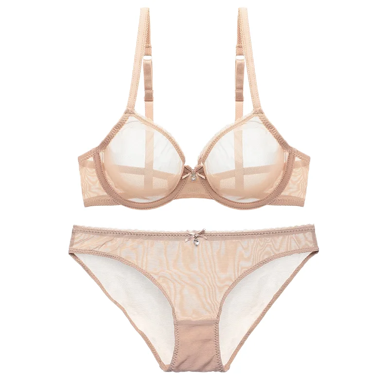 Wholesale Women Sexy See-Through Lingerie Set Lace Transparent Bra Bikini Panty Adjustable Straps Bow Decoration