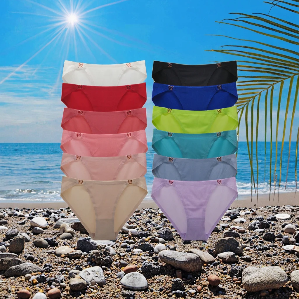 Wholesale Women 12 Colors Mix Hipster Panties - Low-Rise Hollow Out Plain Dyed Seamless Nylon Everyday Underwear