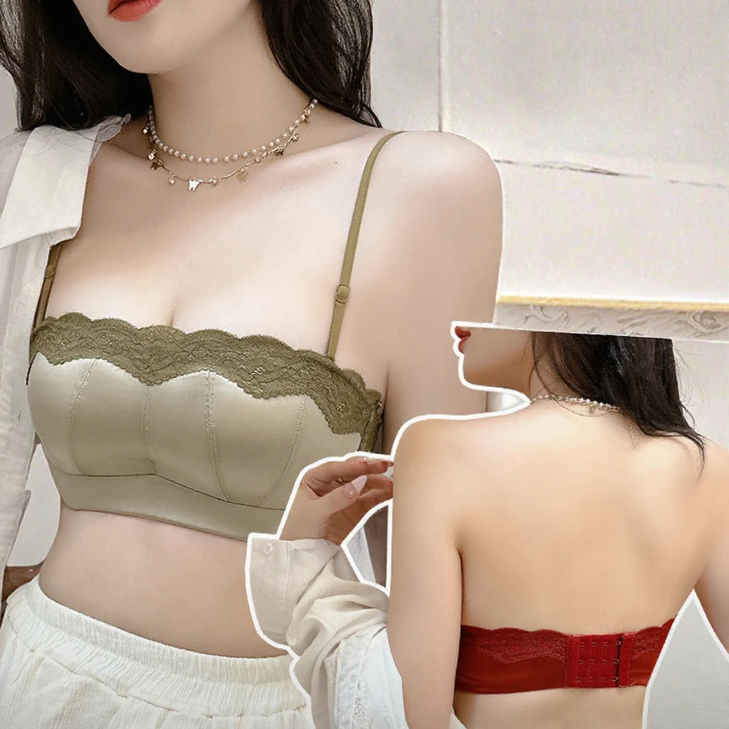 New Trend Wireless Bra for Women Custom Full Cup Ladies V Neck Support Push up Bralettes Seamless Padded Scalloped Tank Bras