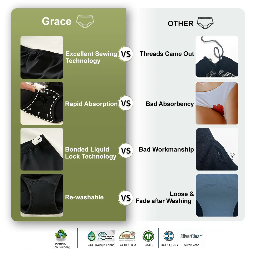 Bamboo Fiber Period Panties Natural Antibacterial High Absorbency Leakproof Skin Friendly Washable