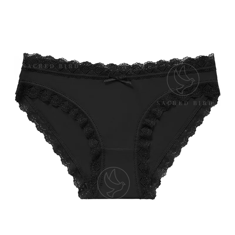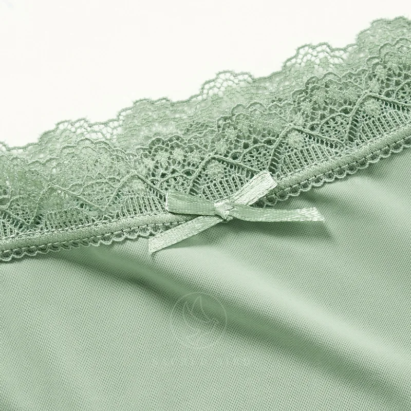 Women's Sexy Lace Stitching Ram Cotton Low-Rise Underwear Breathable Lightweight Distinctive Bow Lace Briefs Plain Dyed