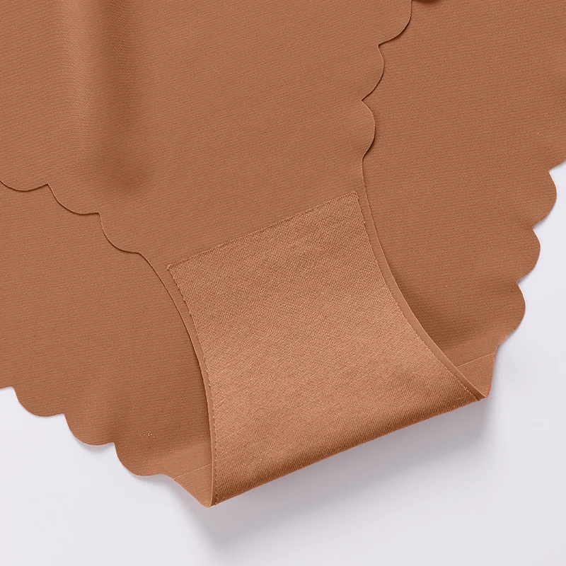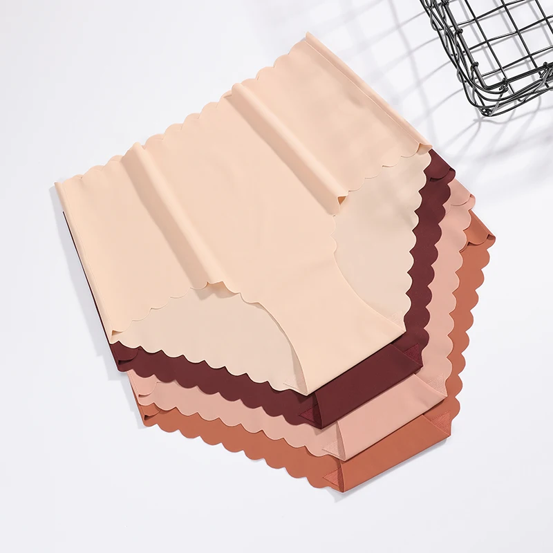 RTS High Rise Wave Cut Traceless Underwear Scallop Naked Khaki Ruffles Brief One Piece Ice Silk Bonded Seamless Panties