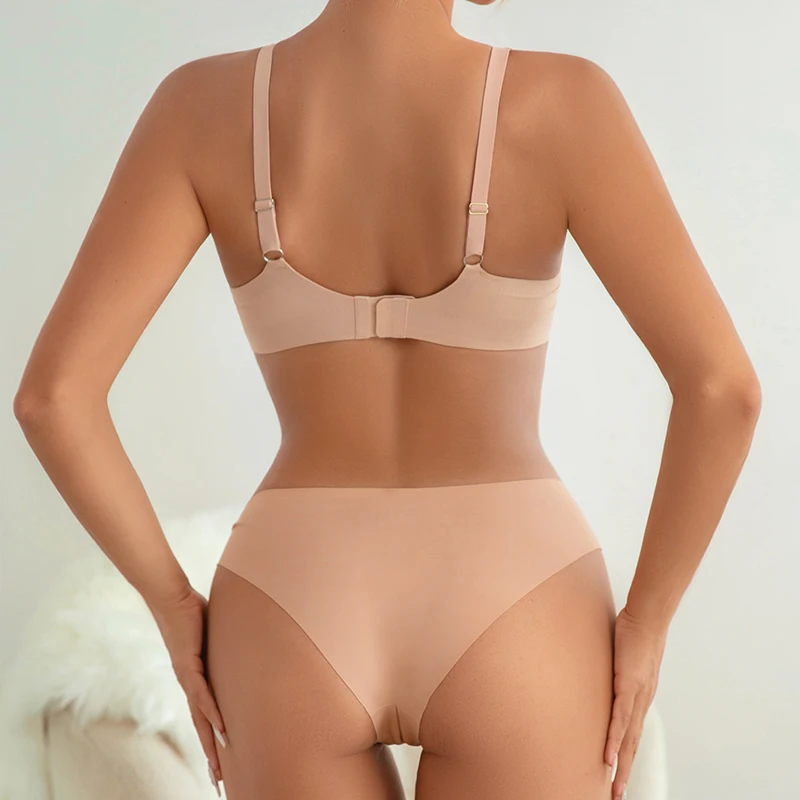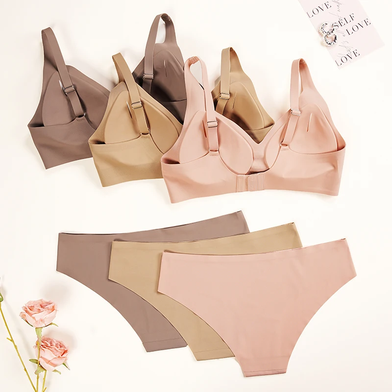 Factory Outlet One Piece Bra and Panties Removable Padded Wireless Bra and Brief Sets Ice Silk Seamless Traceless Bra Sets