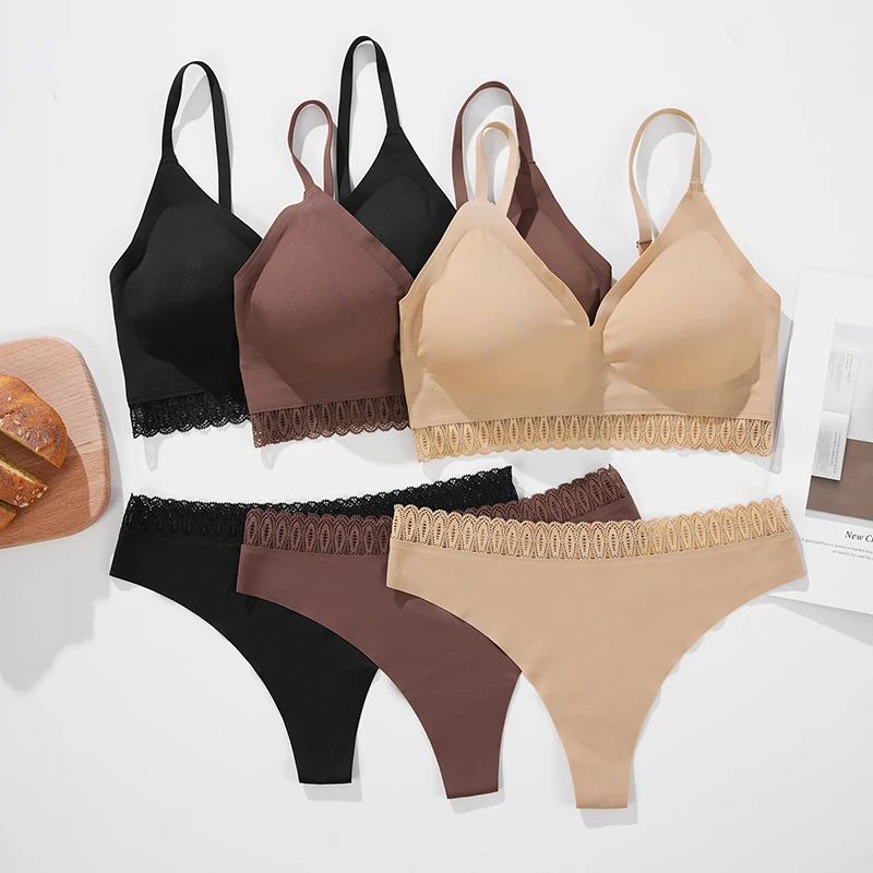 Women Bra Set Sexy Underwear Wireless Adjustable Straps Bra and Thong Set With Breast Pad Customized Ladies Seamless Bra Set